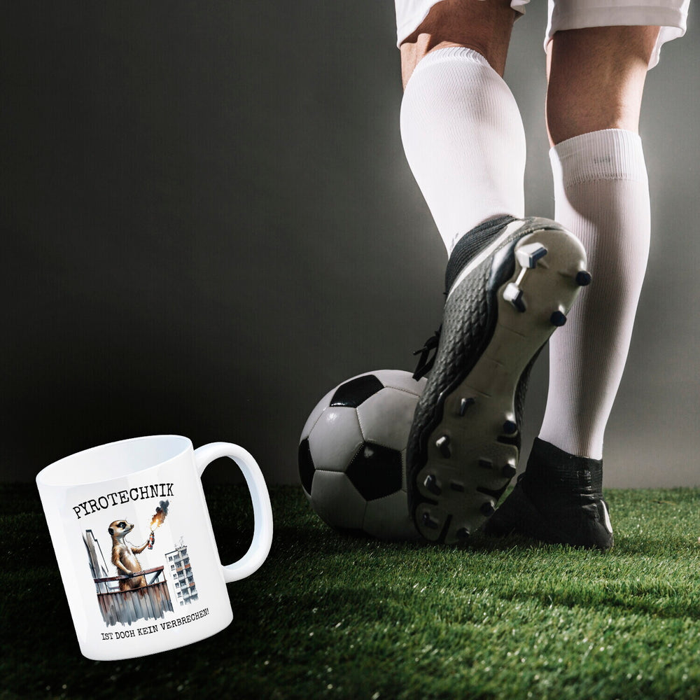- 1x Balkon-Ultra Erdmännchen mit Pyrofackel Kaffeebecher mit Spruch Pyrotechnik ist doch kein Verbrechen in der gewählten Ausführung