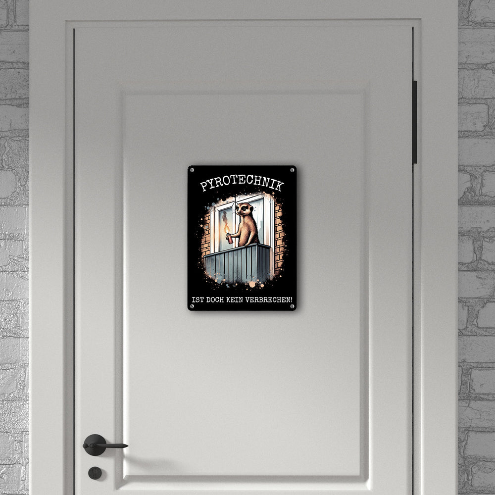 - Hol dir den ultimativen Hype auf den Balkon! Unser Metallschild zeigt ein verrücktes Erdmännchen mit einer leuchtenden Pyrofackel in der Hand. Es steht auf einem Plattenbau-Balkon und ist bereit, für die nächste Internet-Sensation zu sorgen.