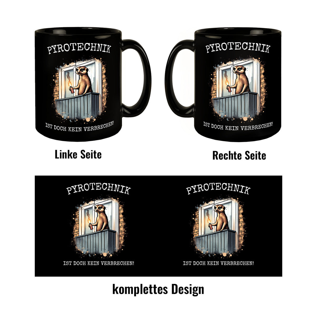 - Lieferumfang: 1x Balkon-Ultra Erdmännchen mit Pyrofackel Tasse in Schwarz mit Spruch Pyrotechnik ist doch kein Verbrechen
