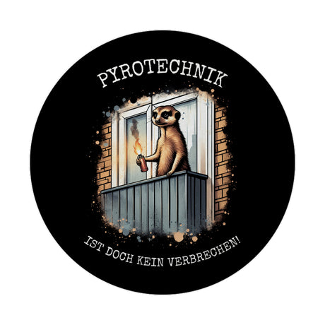 Balkon-Ultra Erdmännchen mit Pyrofackel Magnet rund mit Spruch Pyrotechnik ist doch kein Verbrechen