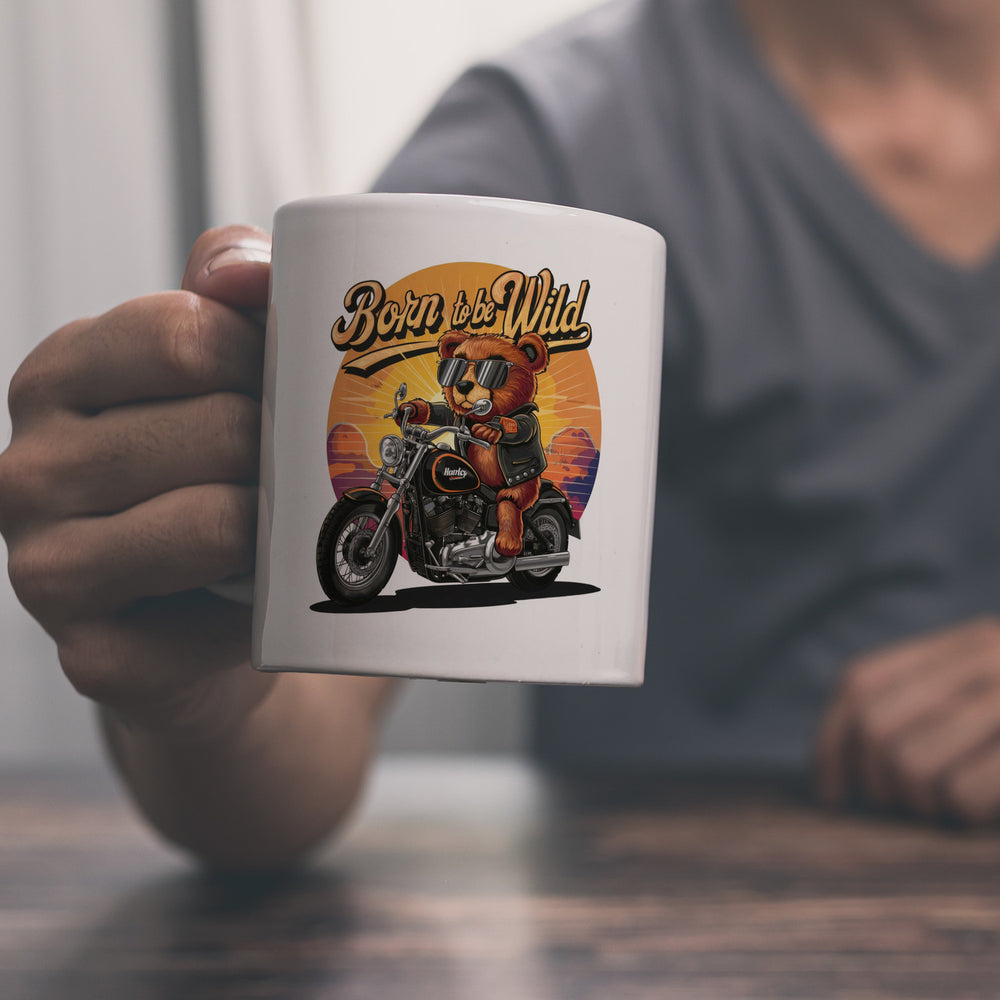 - 1x Bär auf Motorrad Kaffeebecher - Born to be Wild in der gewählten Ausführung