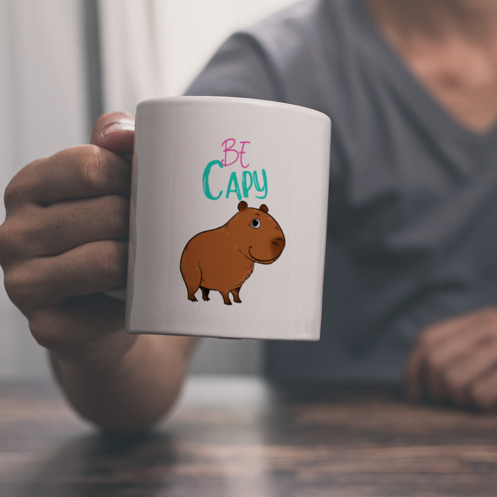 - Mit dem niedlichen Kaffeebecher mit Be Capy Motiv kann man jedem eine kleine Aufmunterung schenken. Der Spruch und das niedliche Design machen ihn zu einem idealen Begleiter sowohl im Büro als auch im Alltag. Sei fröhlich!