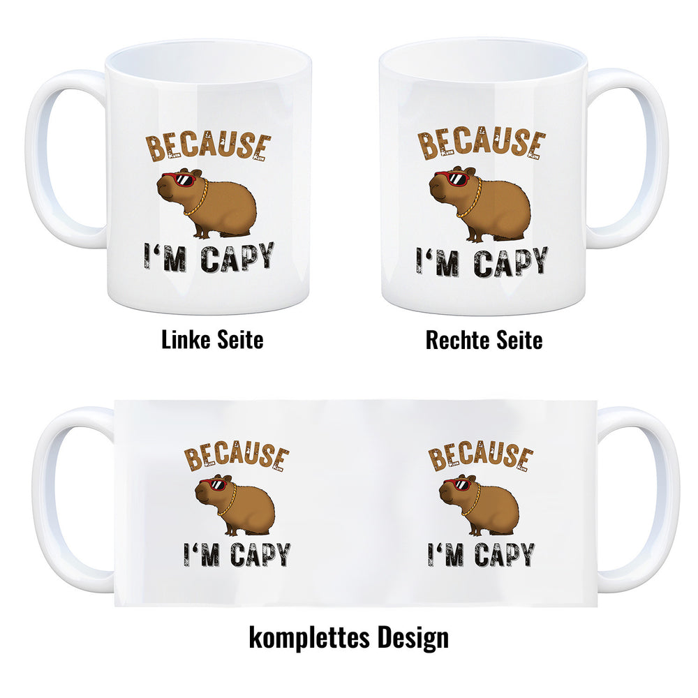 • 1x Because I´m capy Kaffeebecher mit coolem Capybara Motiv in der gewählten Ausführung