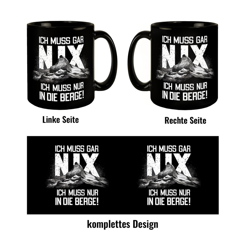 - Diese Tasse wird dein Herz höherschlagen lassen! Die beeindruckende Berglandschaft mit markantem Gipfel entführt dich in die Höhe, während der humorvolle deutsche Spruch "Ich muss gar nix! Ich muss nur in die Berge!" für einen Schmunzler sorgt. Perfekt für Gipfelstürmer und Bergliebhaber!