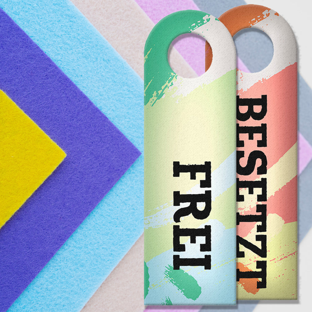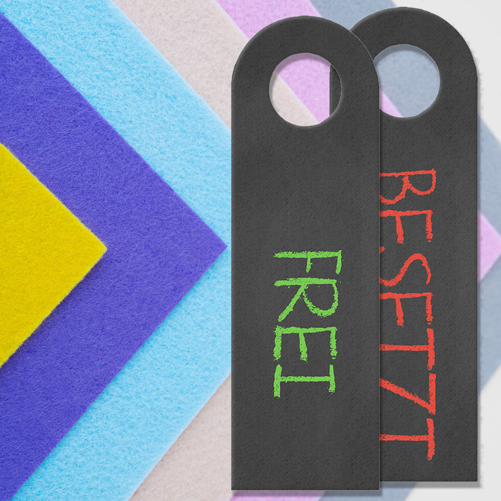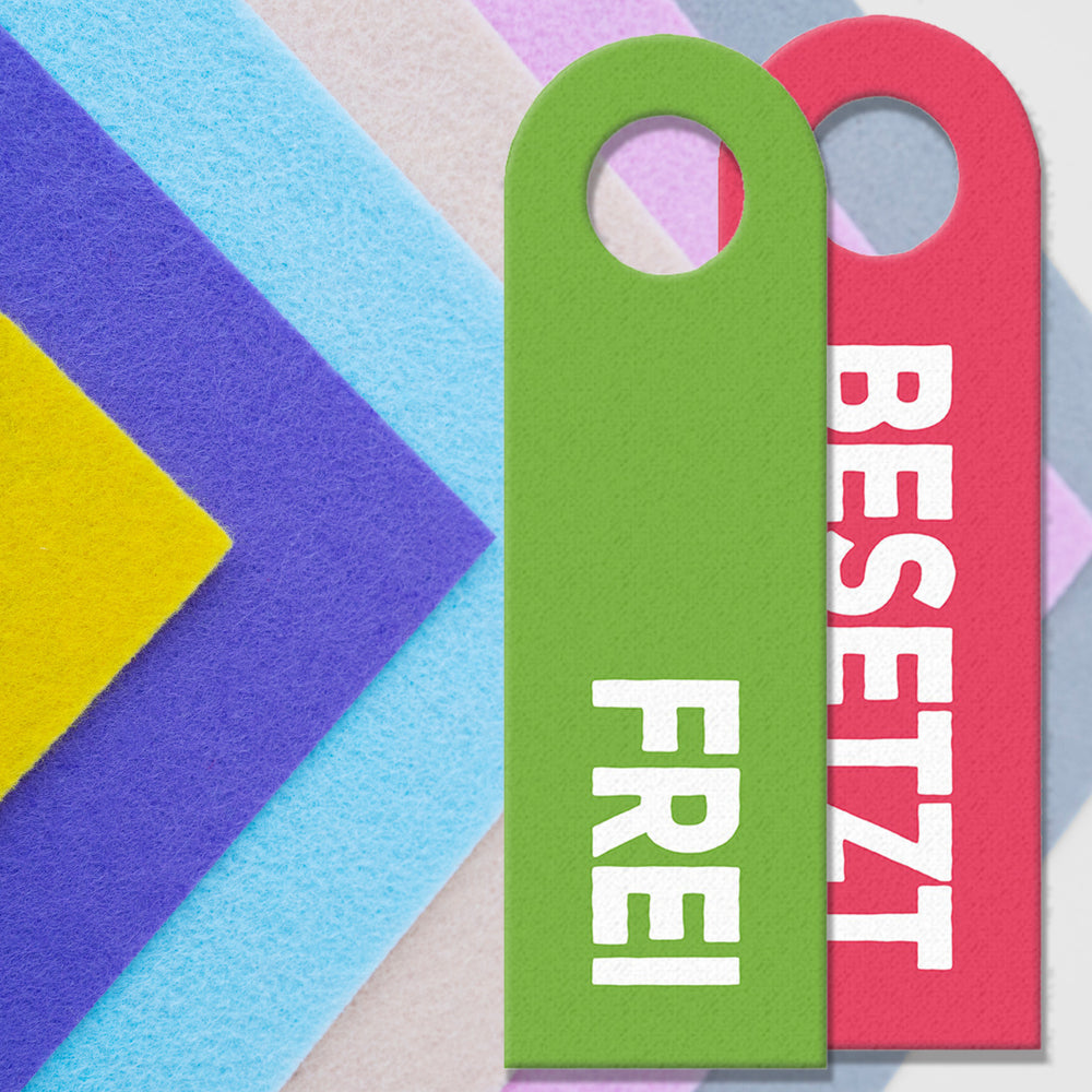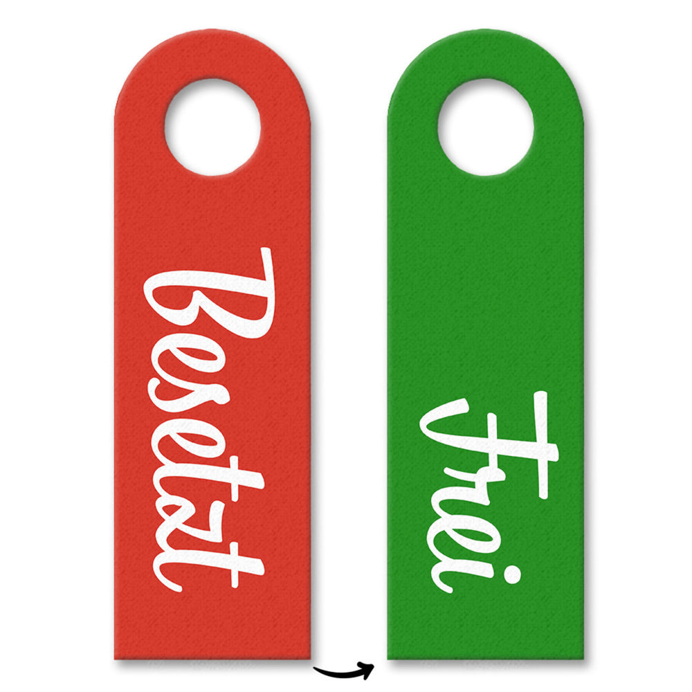 Je nach Seite kann man sehen, ob der Raum besetzt oder frei ist. Hinweise: Material: Filz / Größe ca. 8x27 cm / beidseitig bedruckt