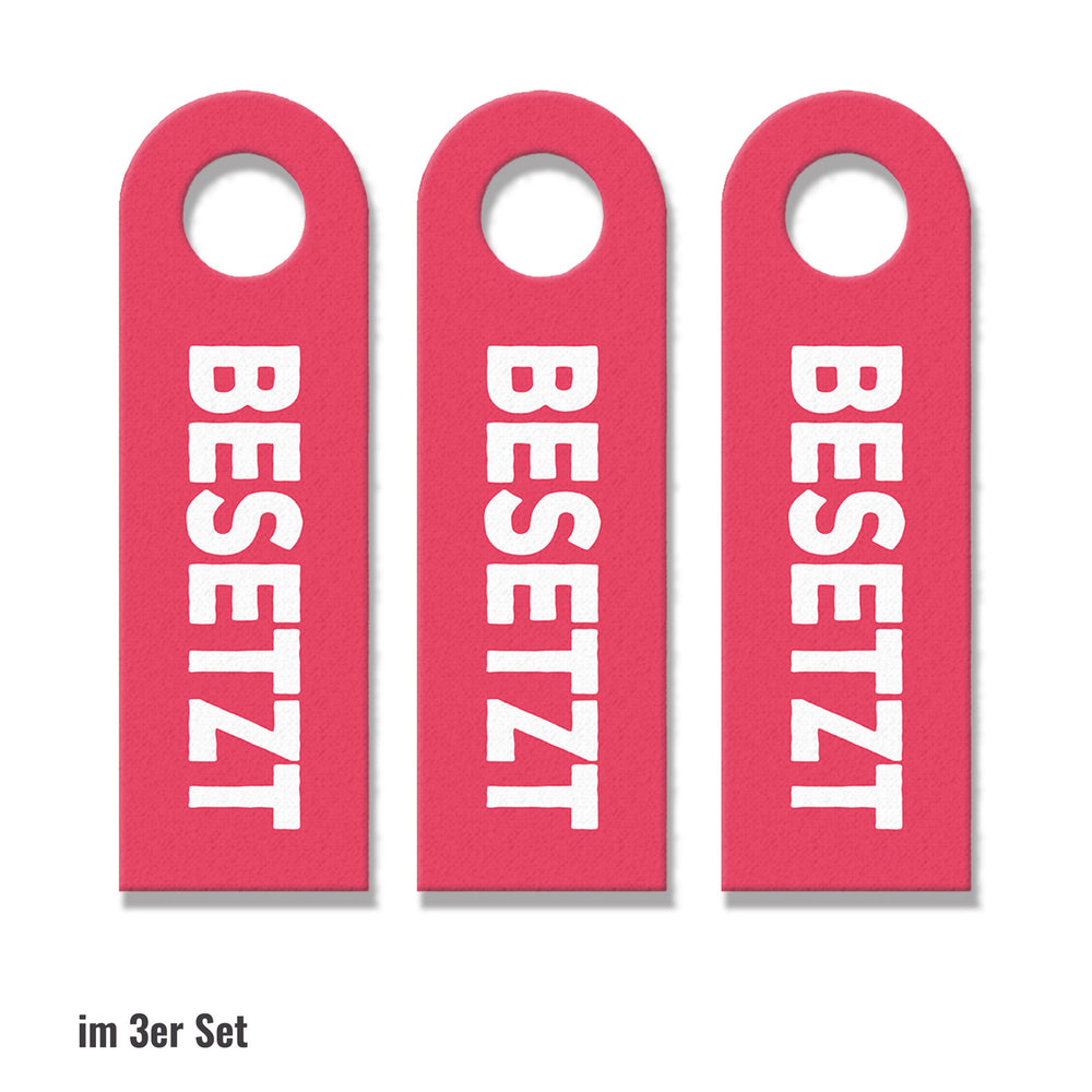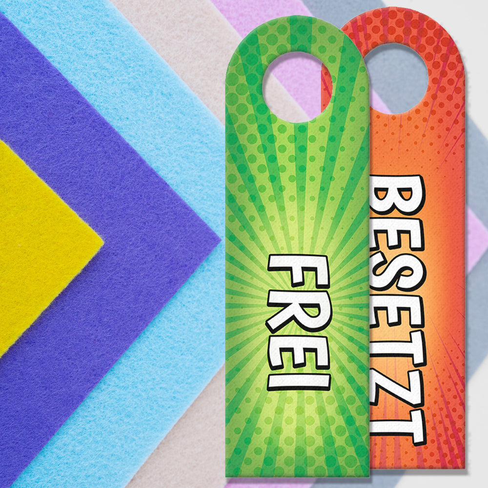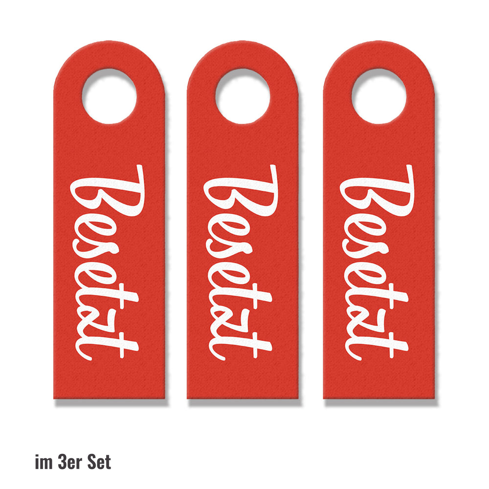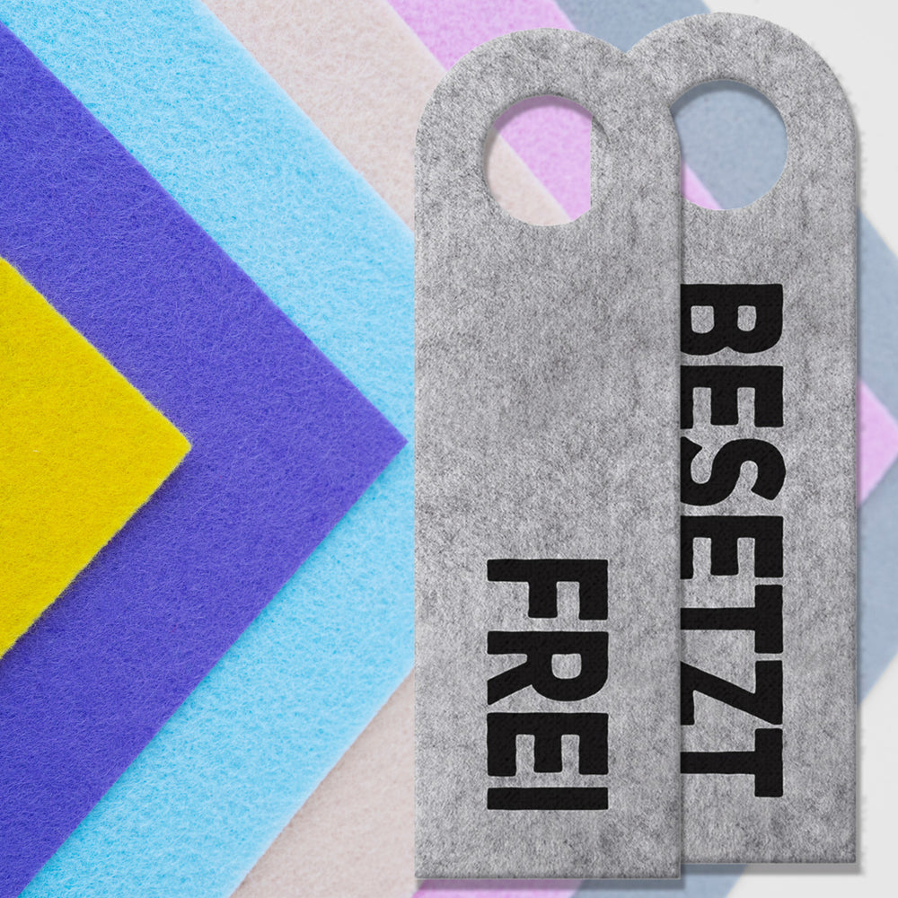 Je nach Seite kann man sehen, ob der Raum besetzt oder frei ist. Hinweise: Material: Filz / Größe ca. 8x27 cm / beidseitig bedruckt