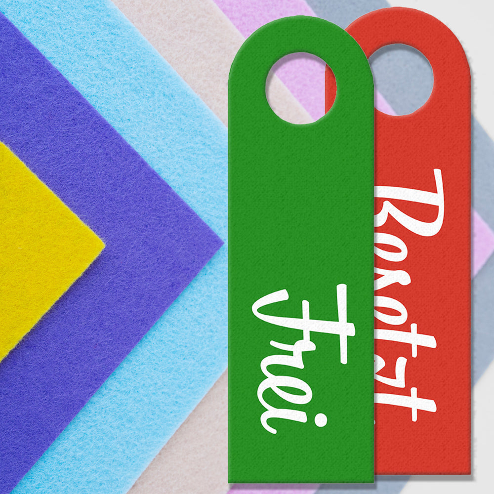 - Einzeln erhältlich oder als 3er- und 10er-Sparset. Aus hochwertigem Filz mit praktischem Loch für die Türklinke. Mit Sorgfalt in Handarbeit hergestellt in unserer Türhänger-Manufaktur in Deutschland.
