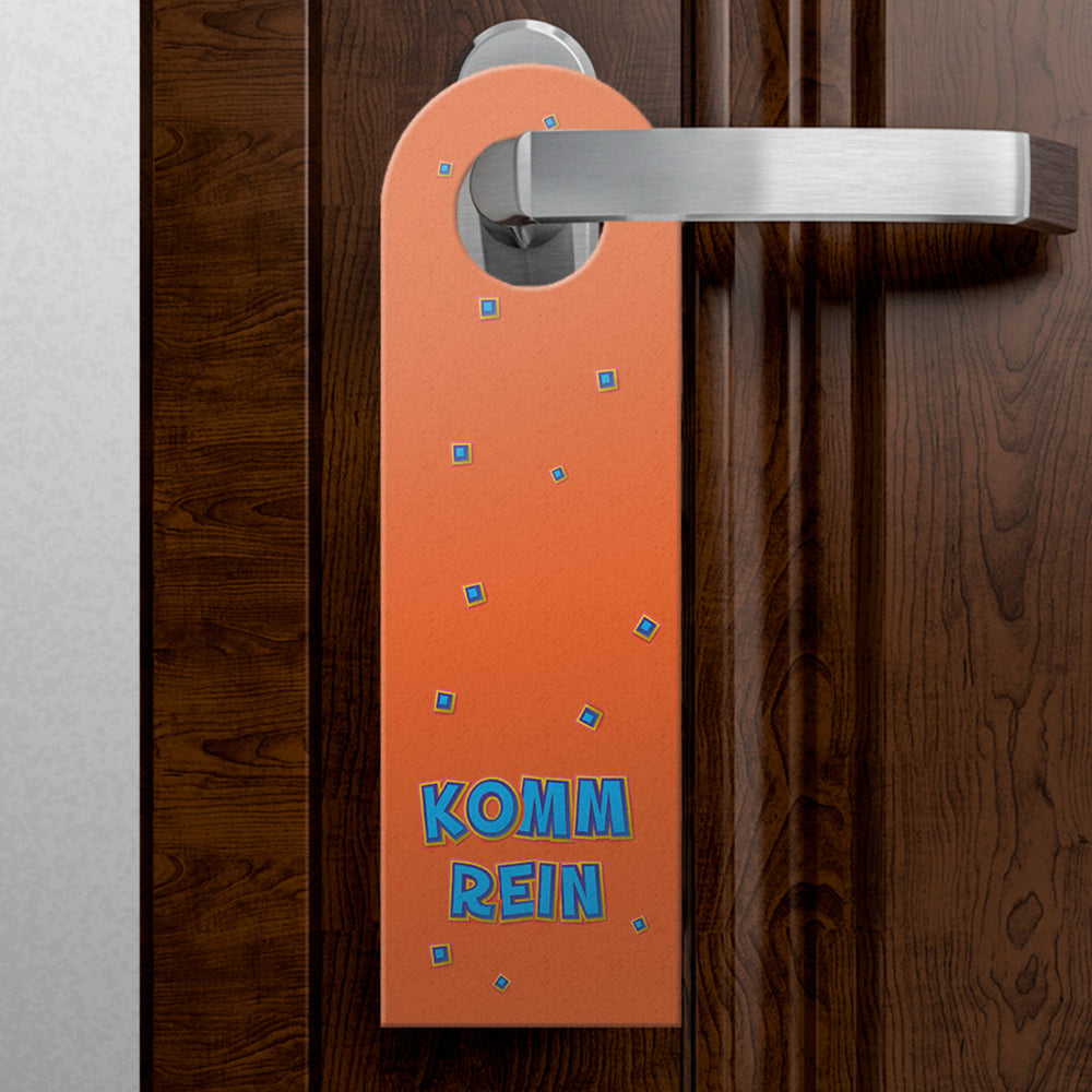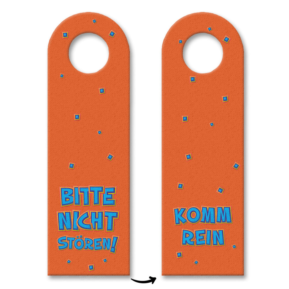 - 1x Bitte nicht stören oder Komm rein Türhänger im Comic-Stil in Orange in der gewählten Setgröße