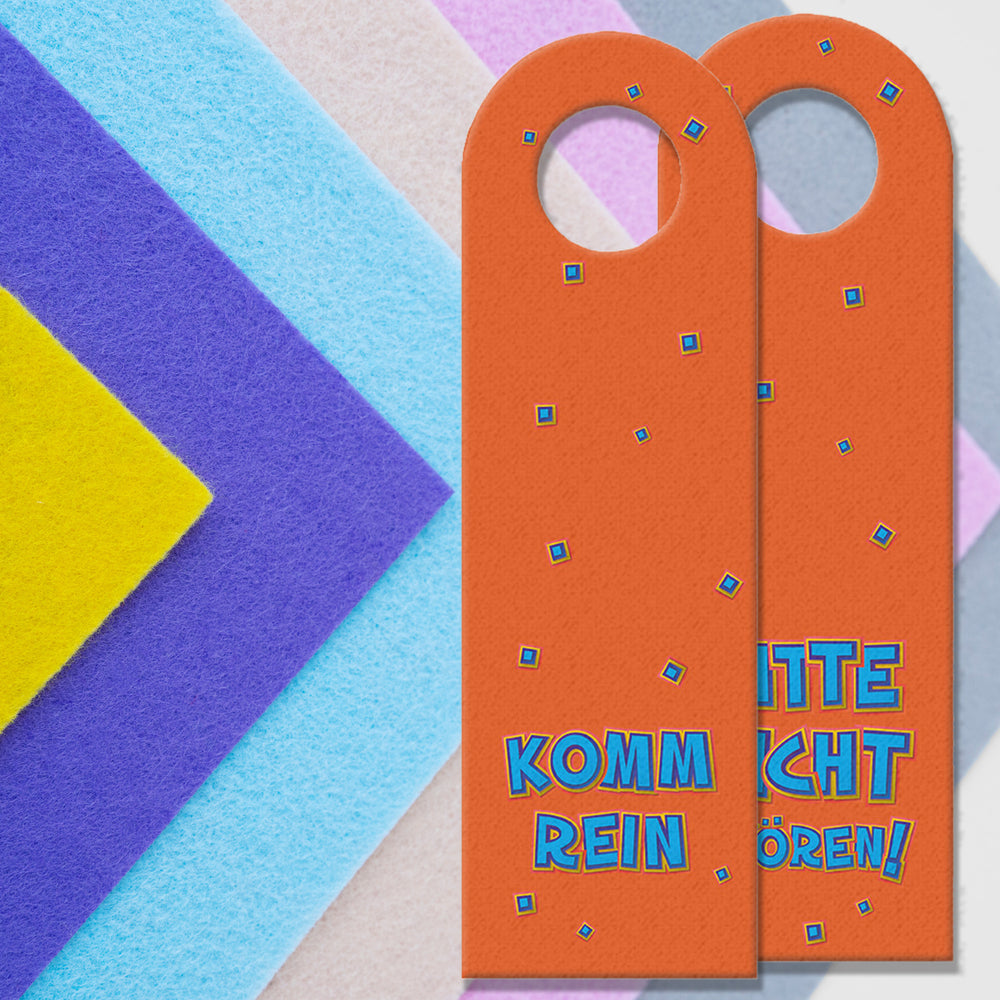 - Einzeln erhältlich oder als 3er- und 10er-Sparset. Aus hochwertigem Filz mit praktischem Loch für die Türklinke. Mit Sorgfalt in Handarbeit hergestellt in unserer Türhänger-Manufaktur in Deutschland.