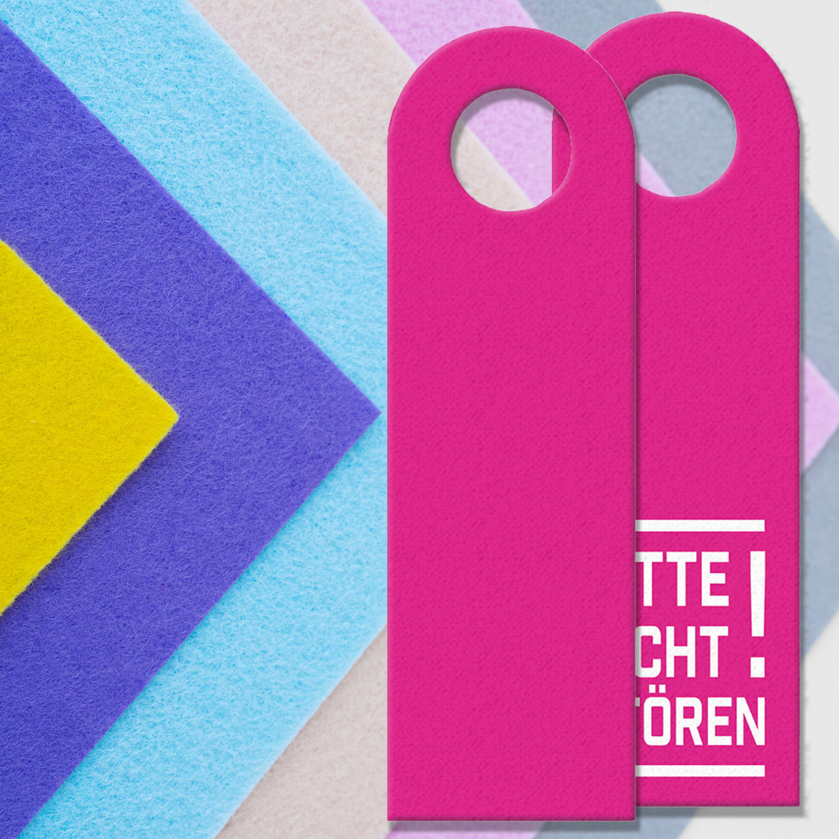 - Einzeln erhältlich oder als 3er- und 10er-Sparset. Aus hochwertigem Filz mit praktischem Loch für die Türklinke. Mit Sorgfalt bedruckt in unserer Türhänger-Manufaktur in Deutschland.