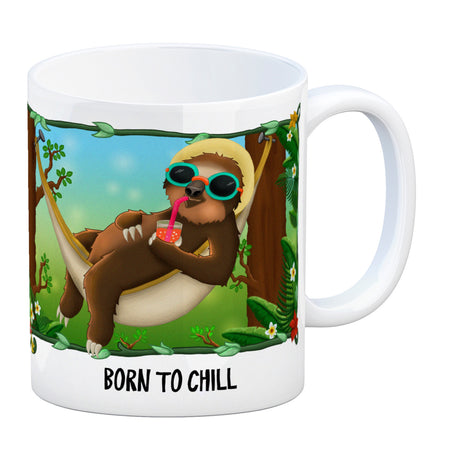 Kaffeebecher mit Faultier in Hängematte Motiv und Spruch: Born to chill