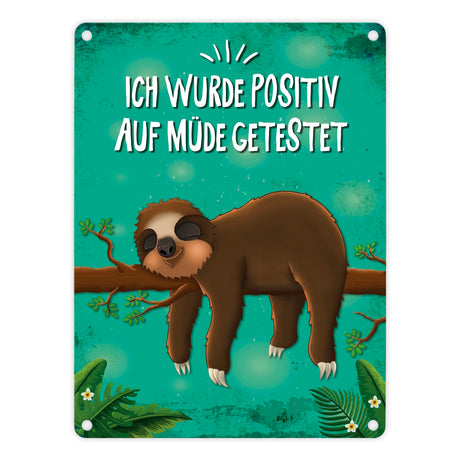 Ich wurde positiv auf müde getestet Faultier Metallschild