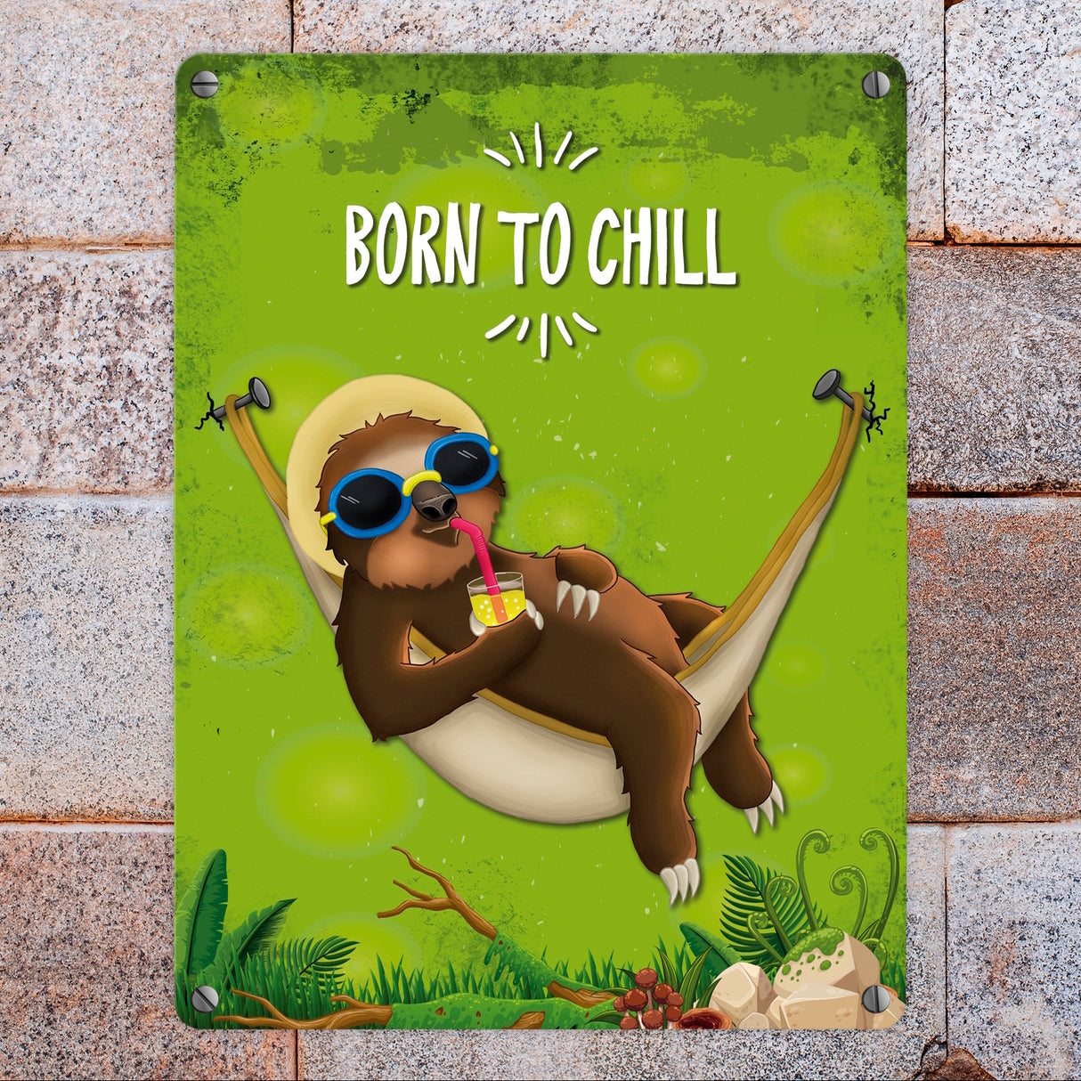 Born to chill - Faultier in Hängematte Metallschild ist auf Lager und wird versandt, sobald es wieder verfügbar ist
