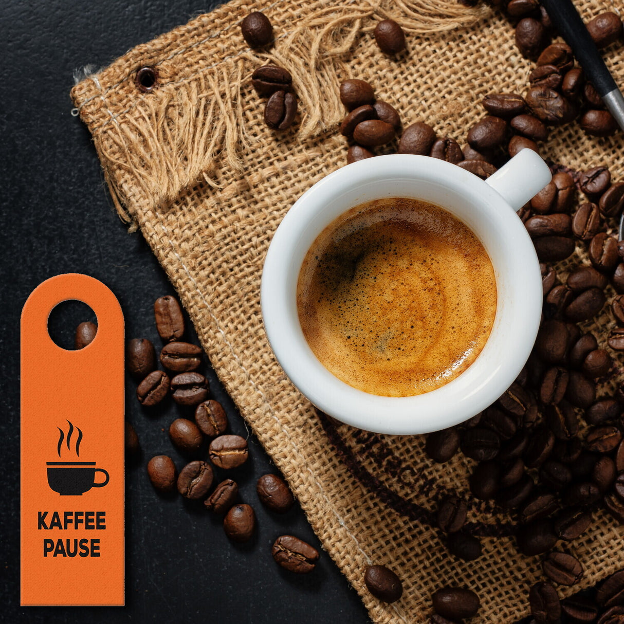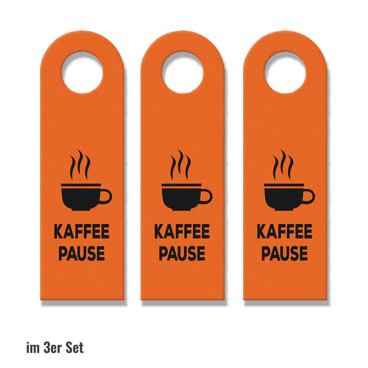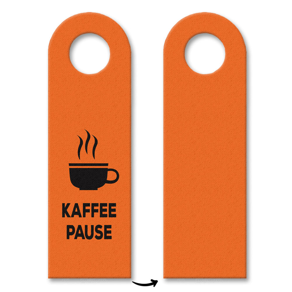 • 1x Büro Türhänger in Orange mit Kaffee Motiv und Spruch: Kaffeepause in der gewählten Setgröße