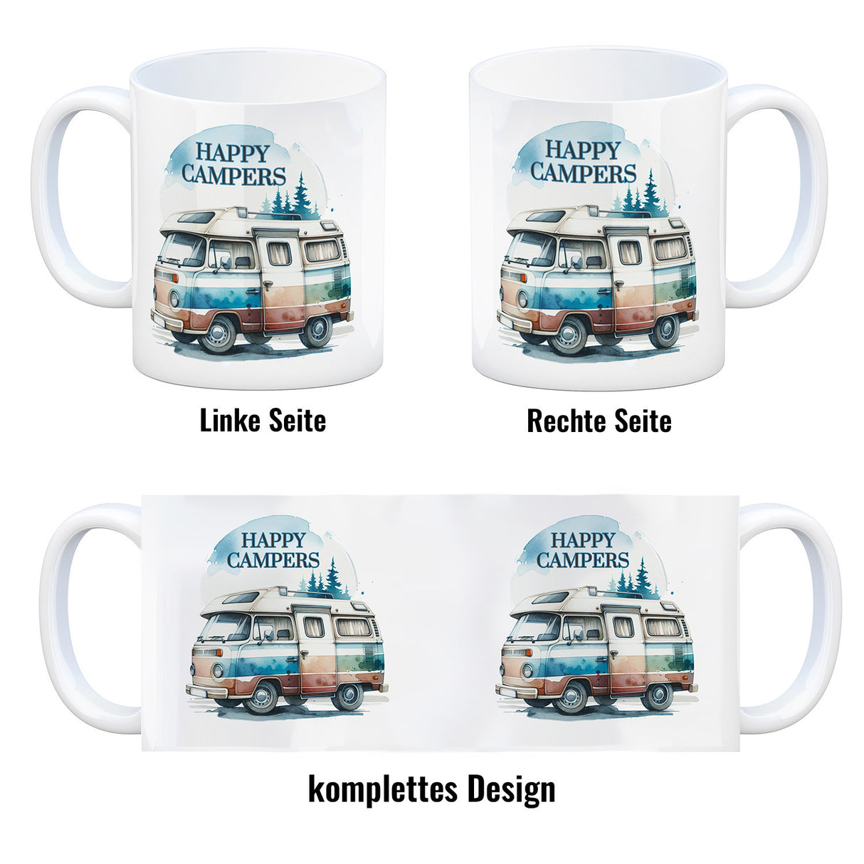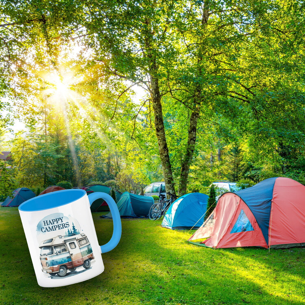 Campingwagen Kaffeebecher mit Spruch Happy Campers