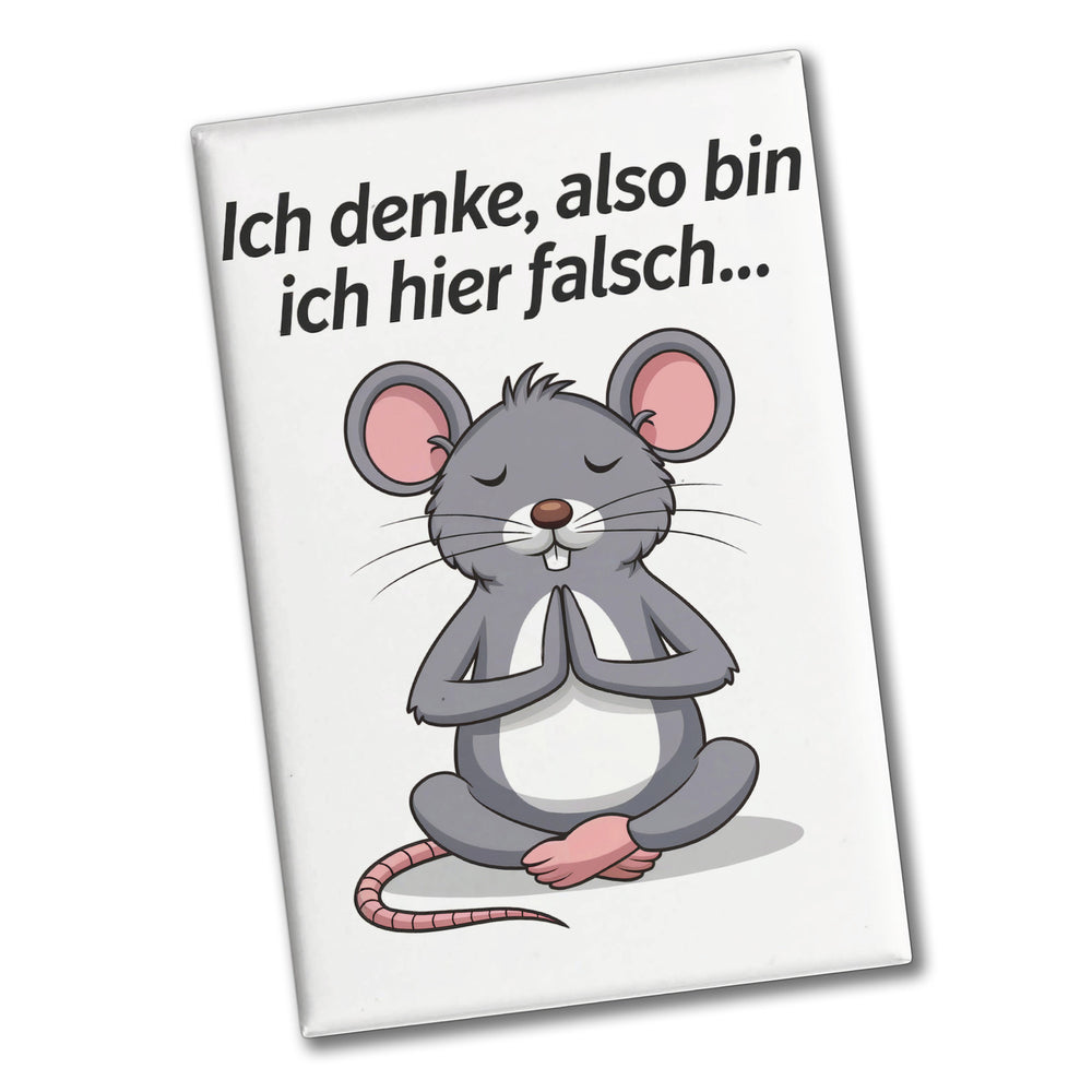 - Träume davon, deine To-Do-Liste mit der Weisheit einer grauen Cartoon-Maus abzuarbeiten! Unser rechteckiger Magnet zeigt die entspannte Maus in einer Pose, die fast Zen-meisterhaft ist. Geschlossene Augen, meditativ, und obendrauf ein lustiger Spruch, der jeden zum Schmunzeln bringt: "Ich denke, also bin ich hier falsch..."