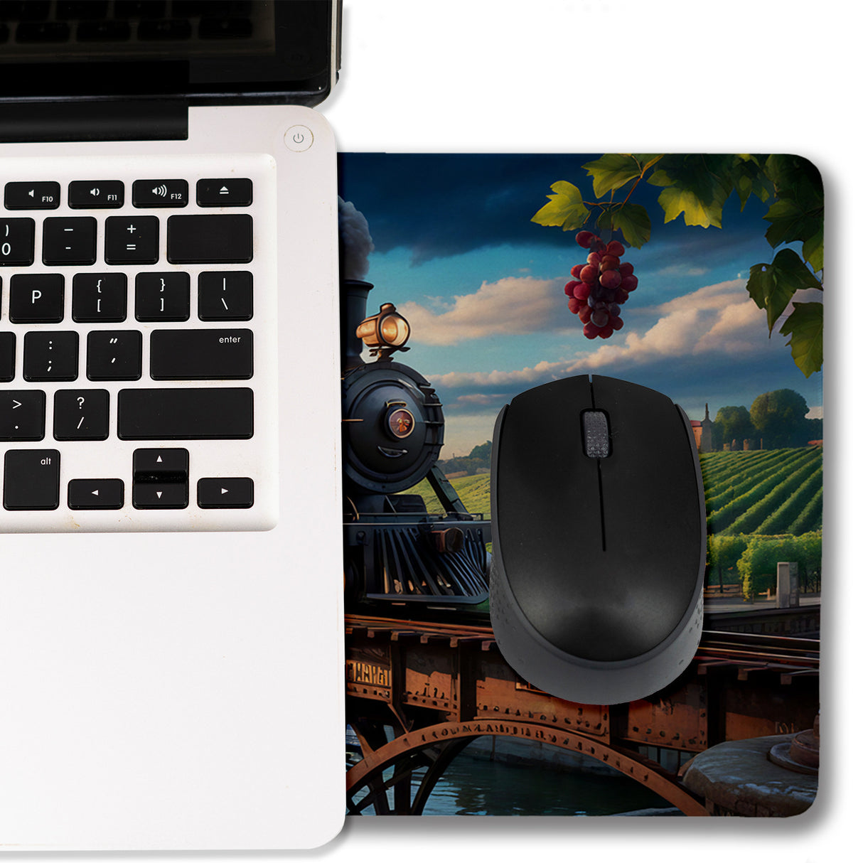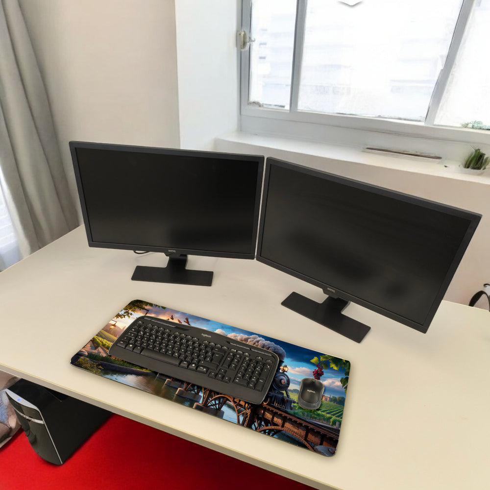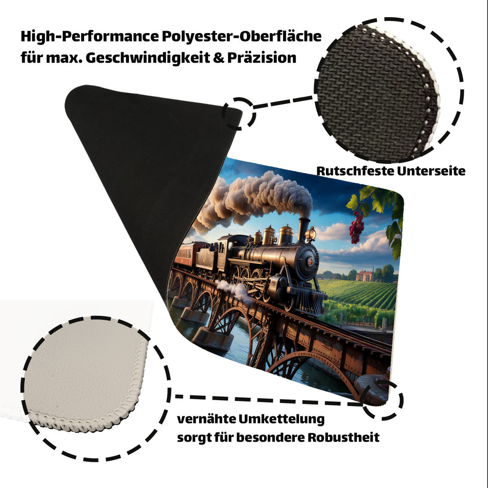 Dampflokomotive Schreibtischunterlage 69x31cm XXL Mauspad Weinberglandschaft
