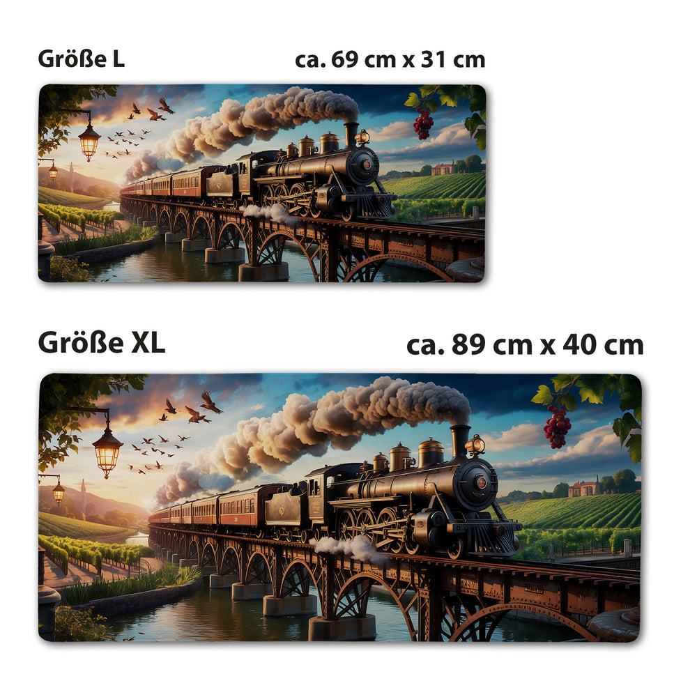 - 1x Dampflokomotive Schreibtischunterlage 69x31cm XXL Mauspad Weinberglandschaft in der gewählten Größe