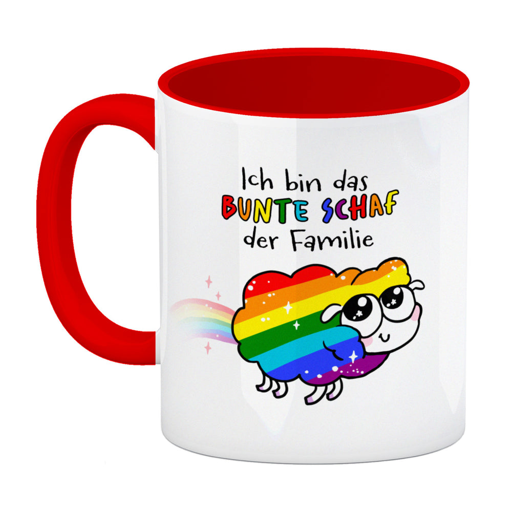 Das bunte Schaf der Familie in Pride-Farben Kaffeebecher mit Spruch