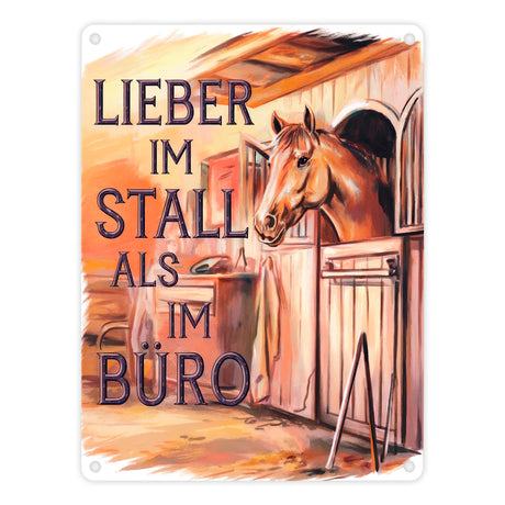 Lieber im Stall als im Büro Metallschild in 15x20 cm für Pferdemädchen