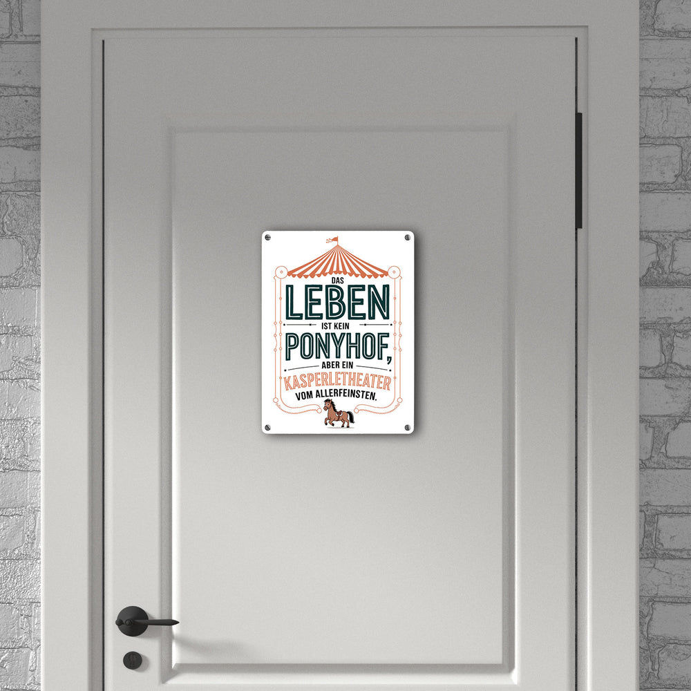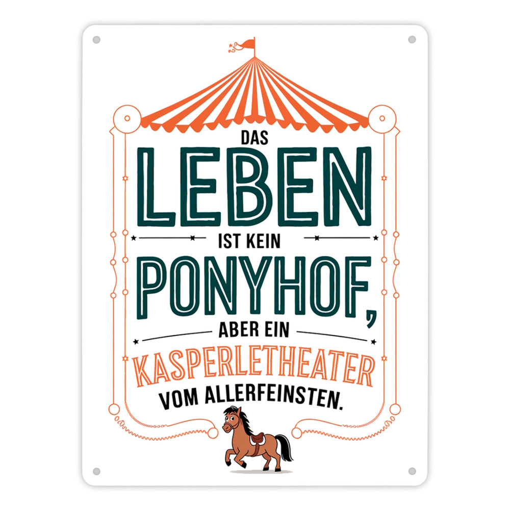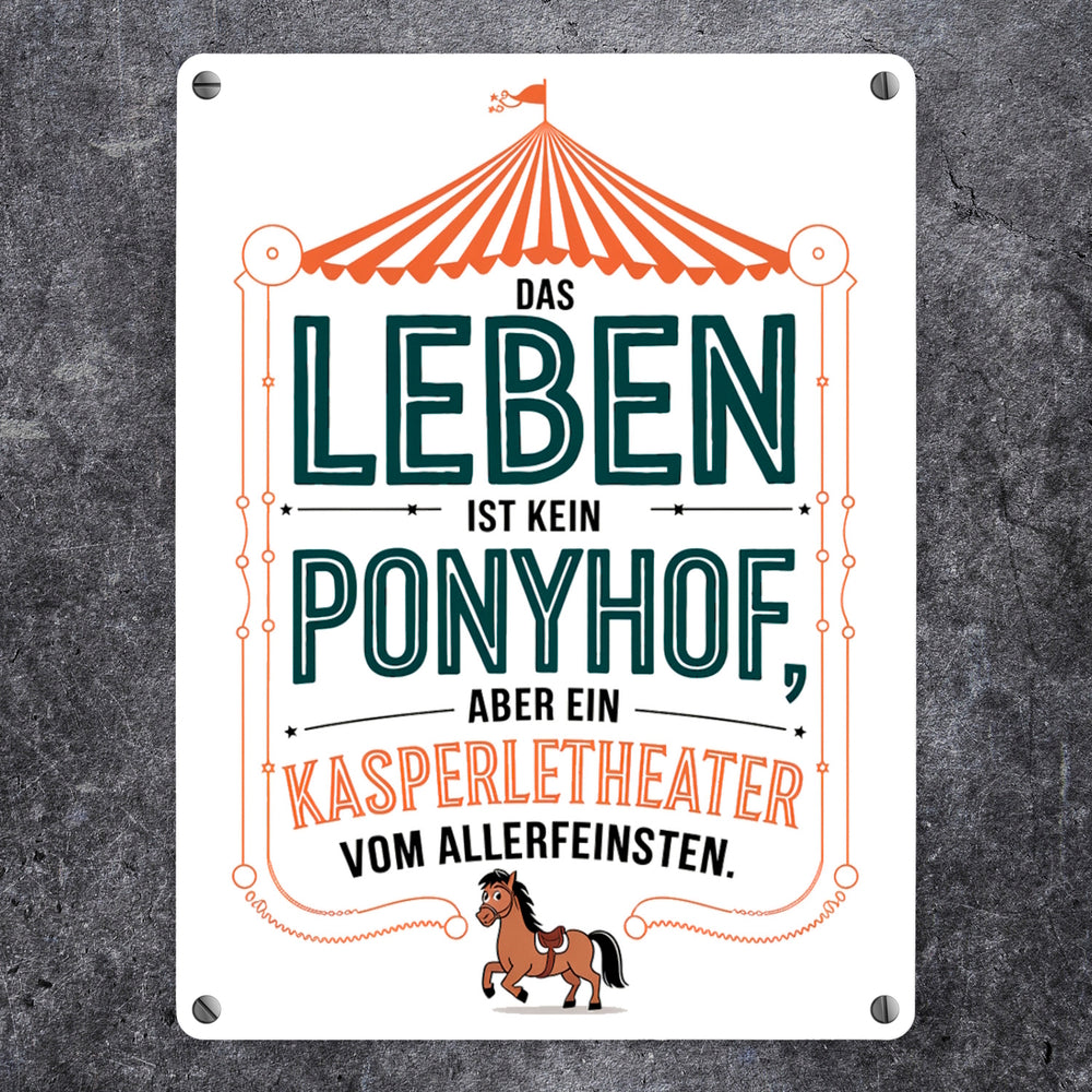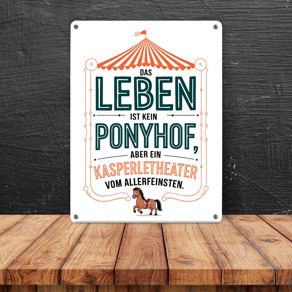 Das Leben ist kein Ponyhof sonder ein Kasperletheater Metallschild in 15x20 cm Cartoon Pferd