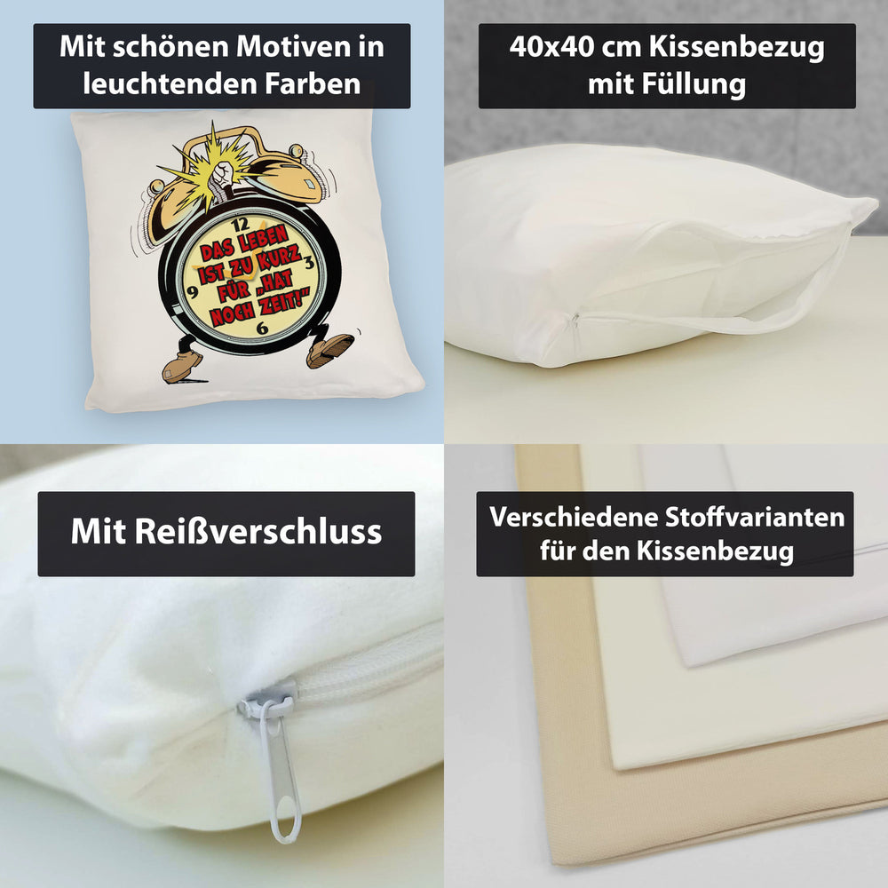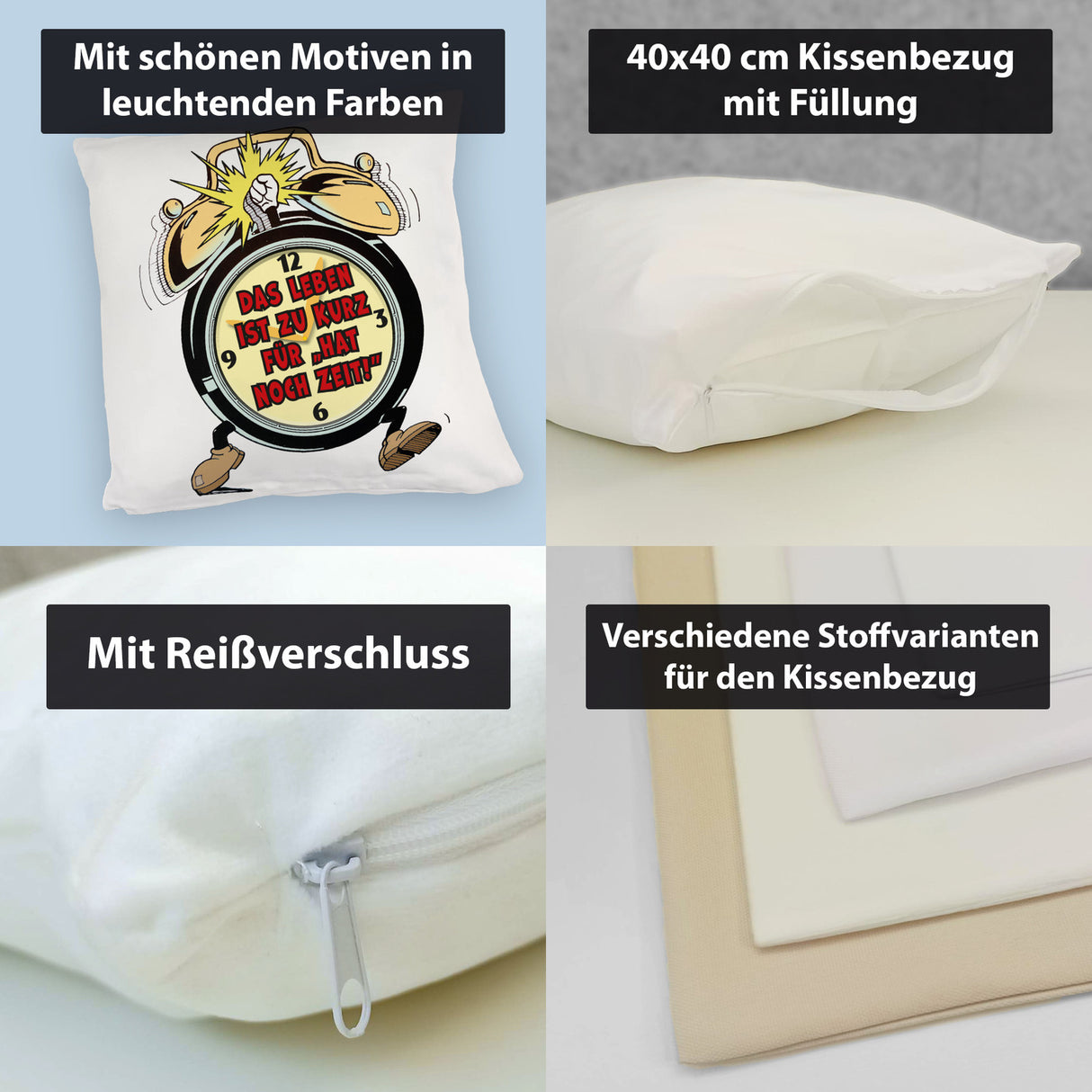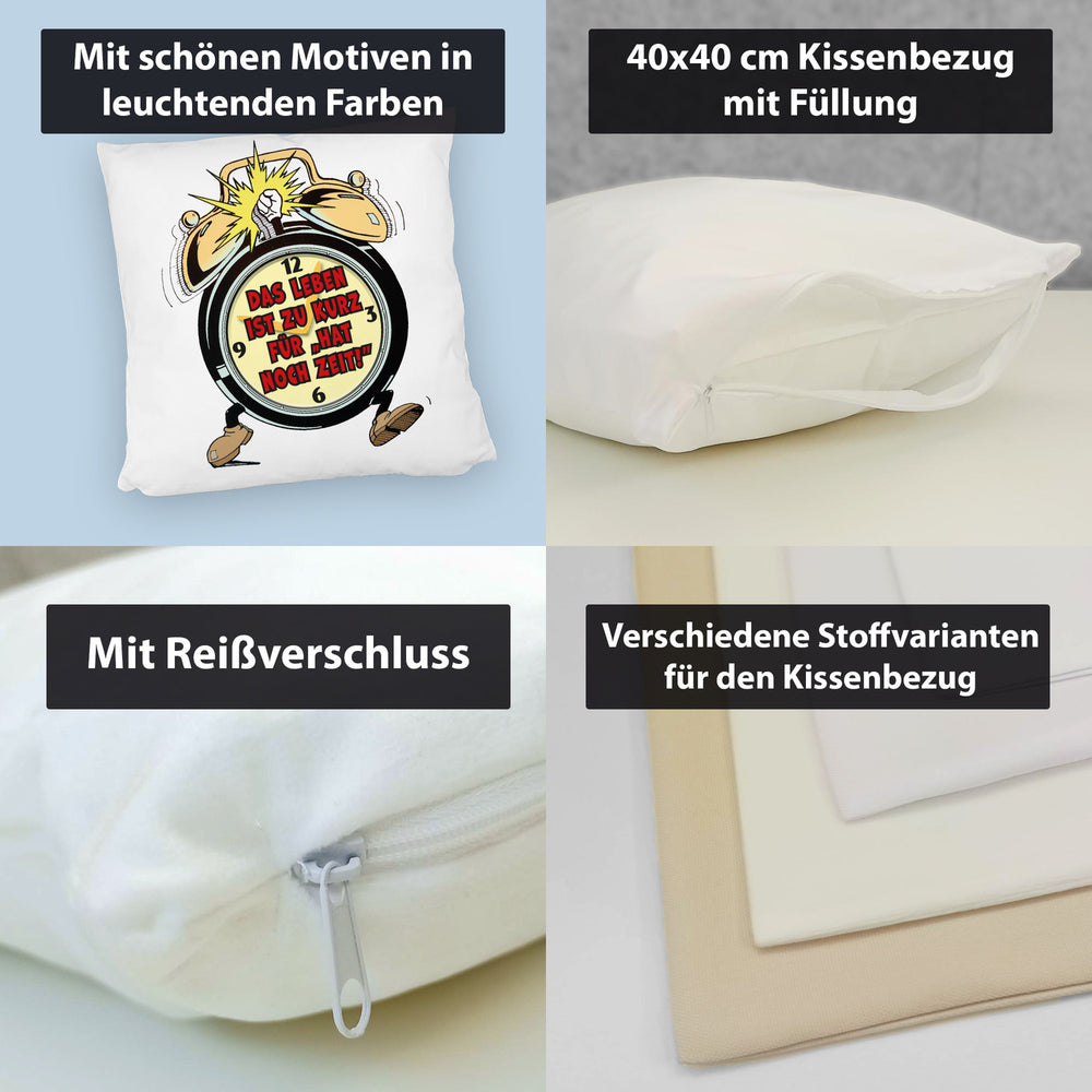 - 1x Das Leben ist zu kurz für hat noch Zeit! Kissen in der gewählten Ausführung