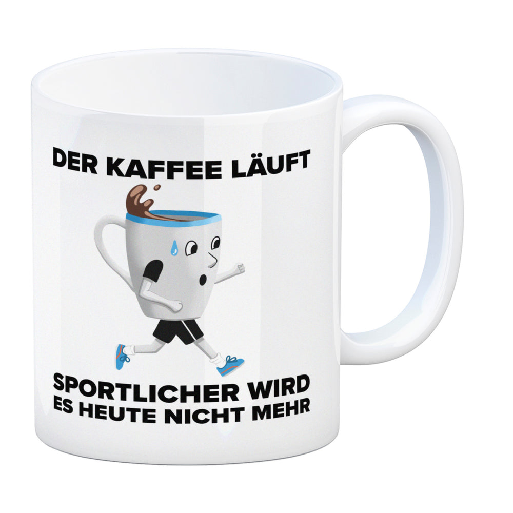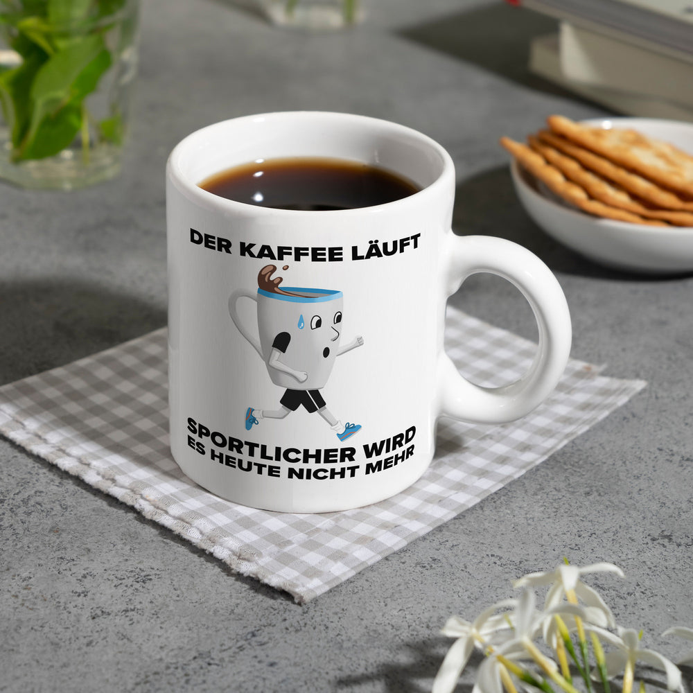 • 1x Der Kaffee läuft - sportlicher wird es nicht mehr - Sportmuffel Kaffeebecher in der gewählten Ausführung