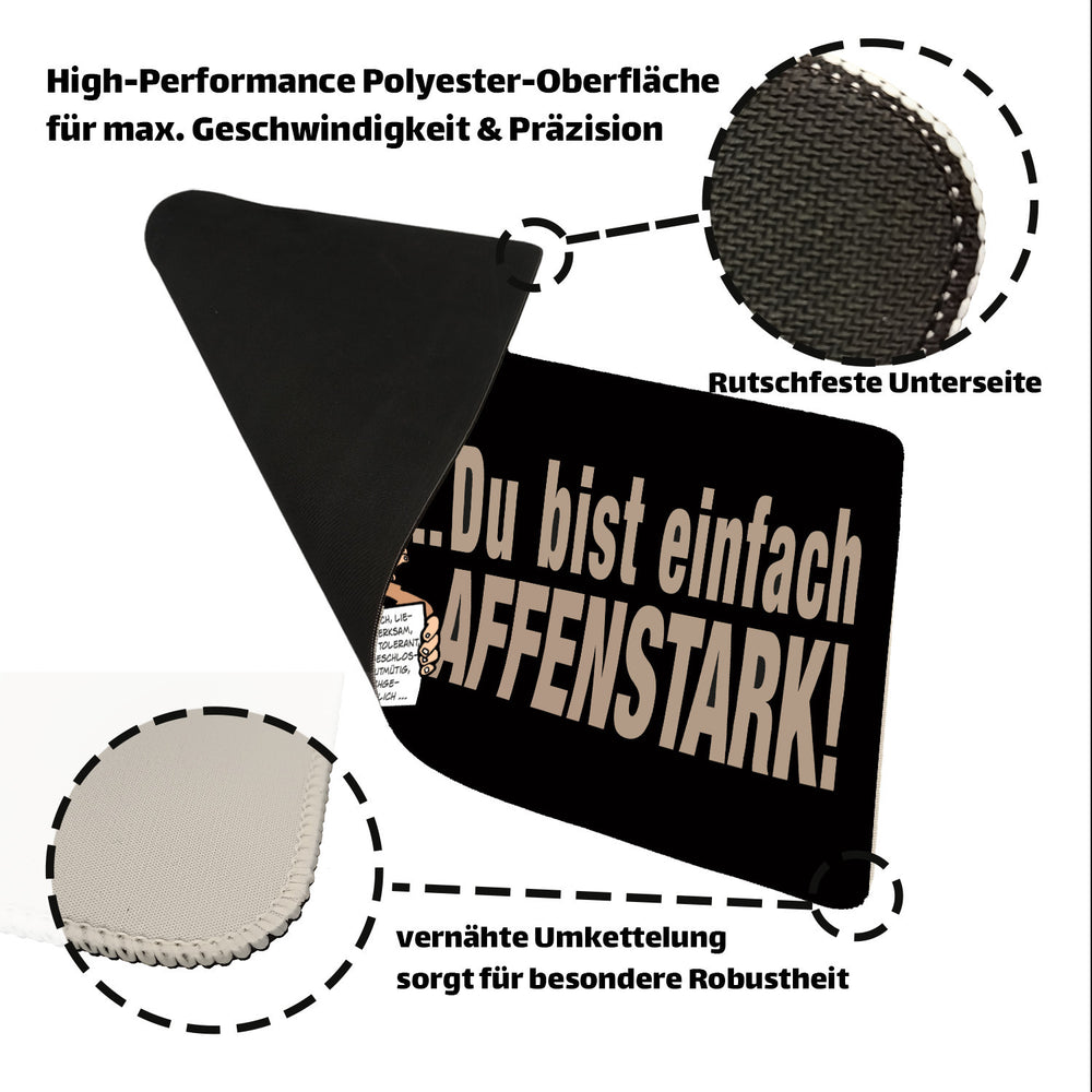 - 1x Du bist einfach affenstark! Schreibtischunterlage 69x31cm XXL Mauspad in der gewählten Größe