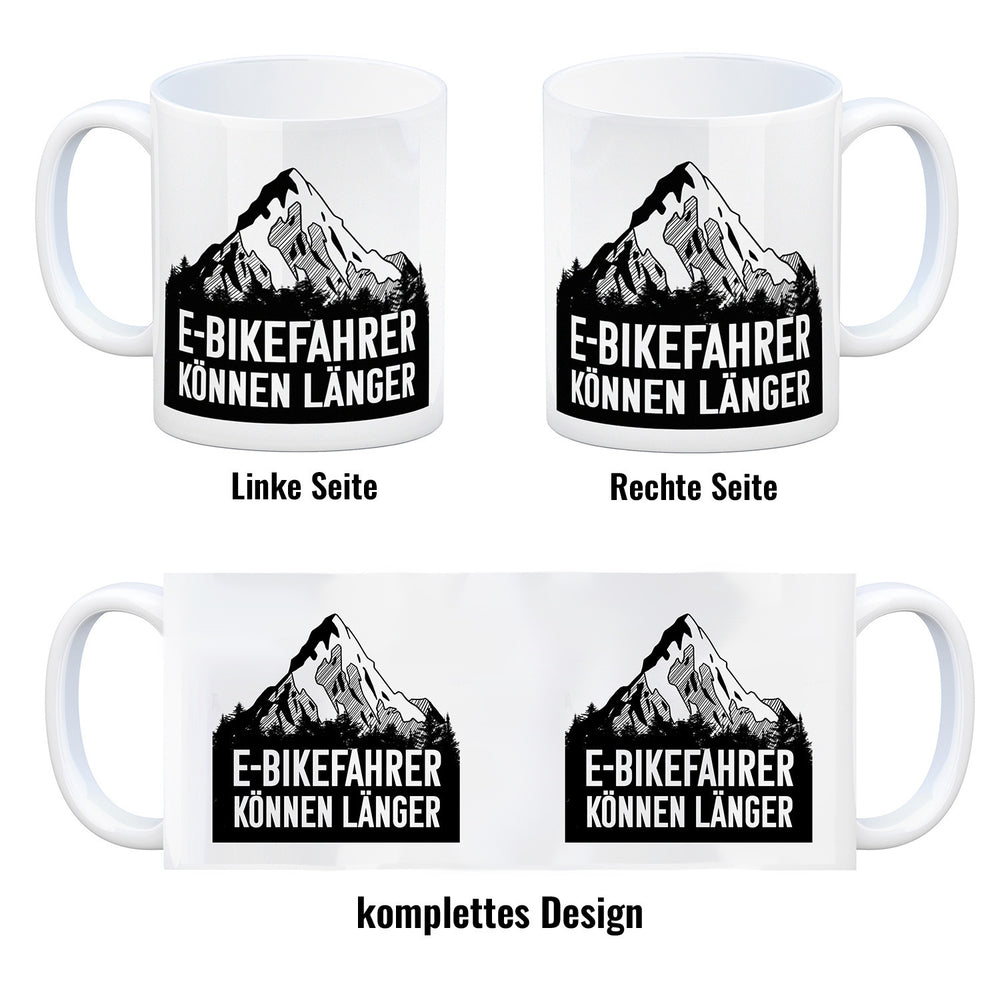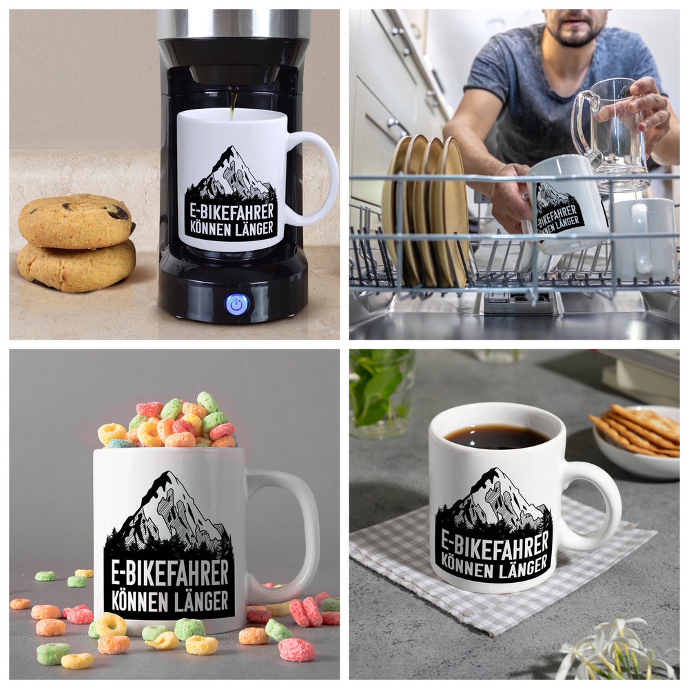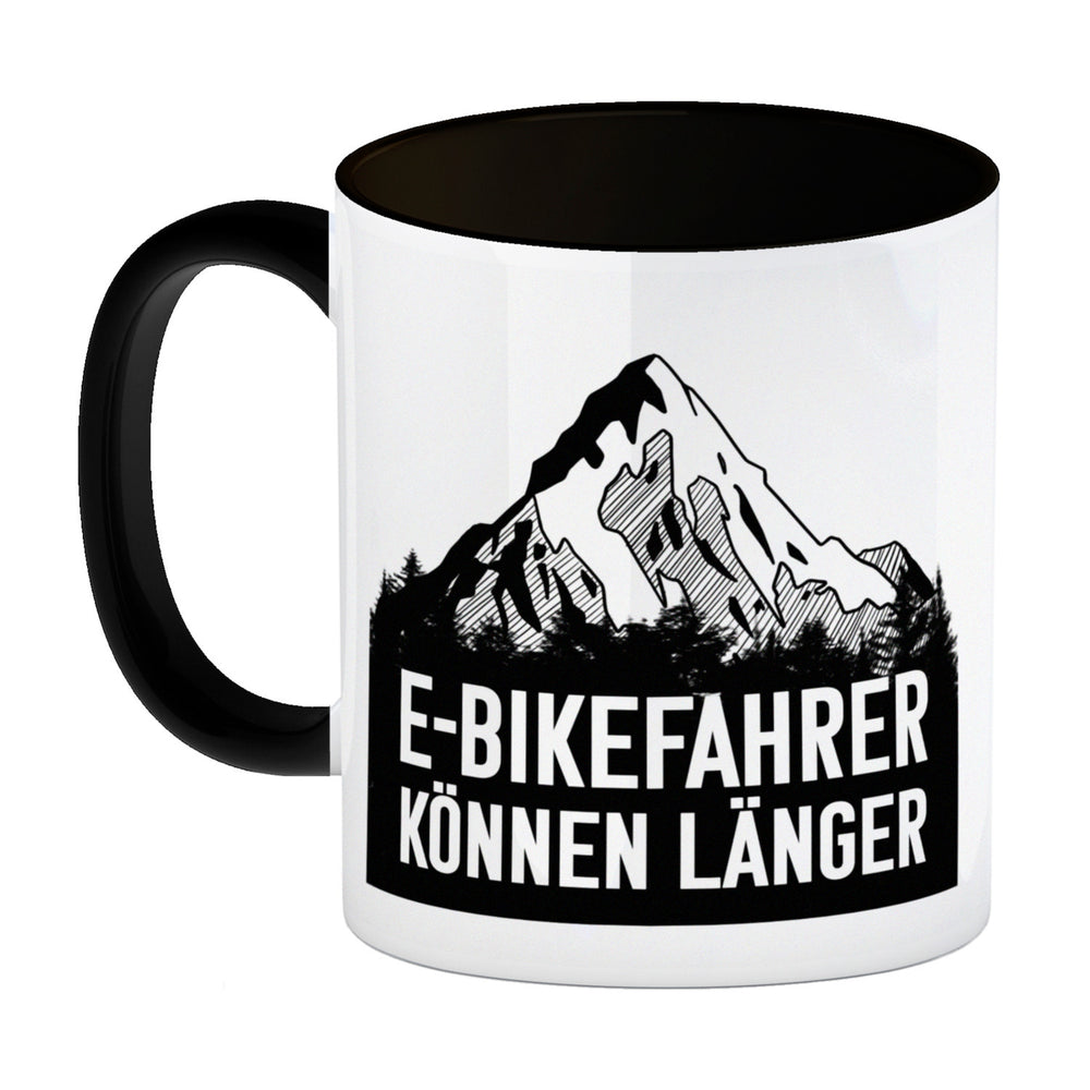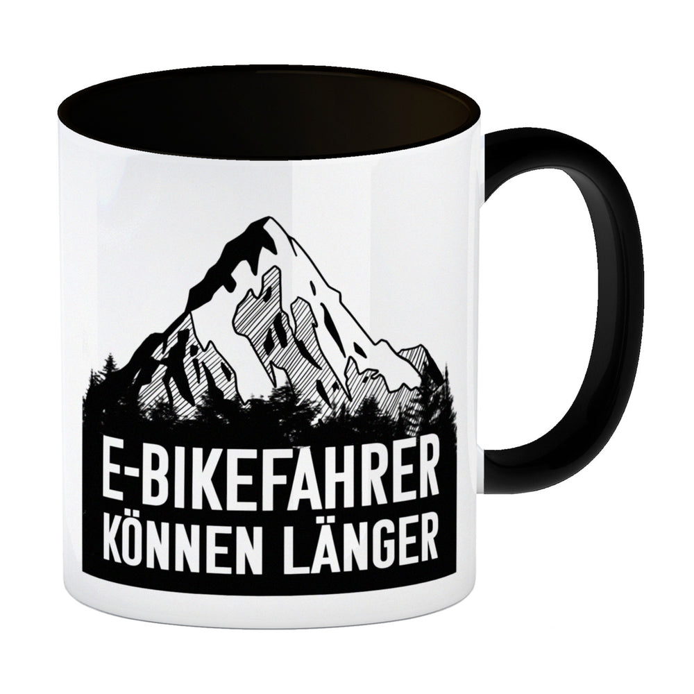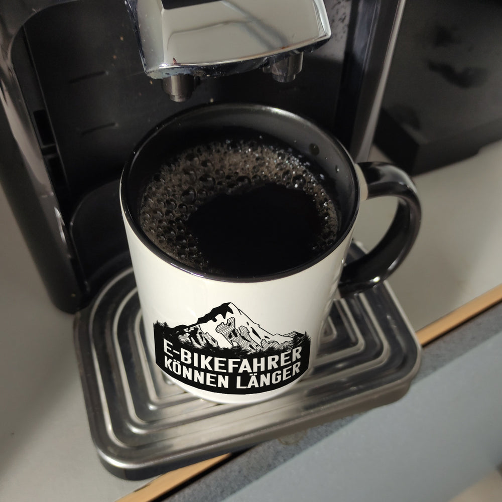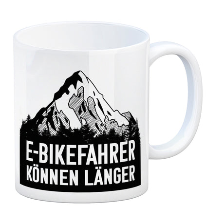 - Es ist allgemein bekannt, dass E-Bikefahrer einfach länger können. Der Spruch auf dieser Kaffeetasse kann in die eine oder in die andere Richtung gedeutet werden.