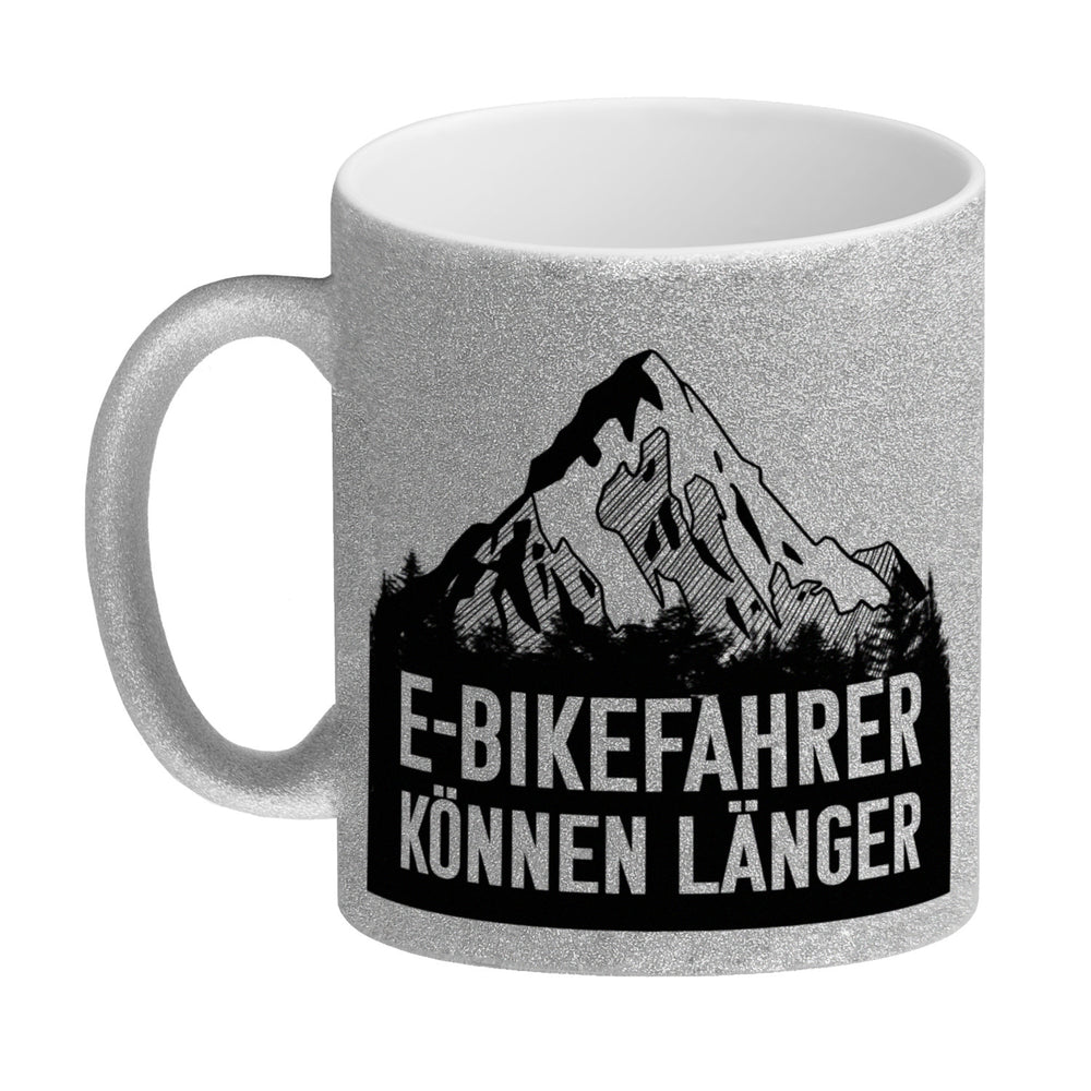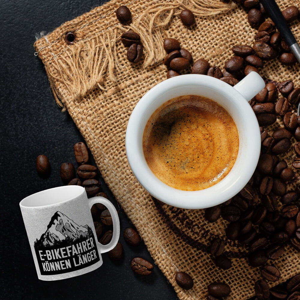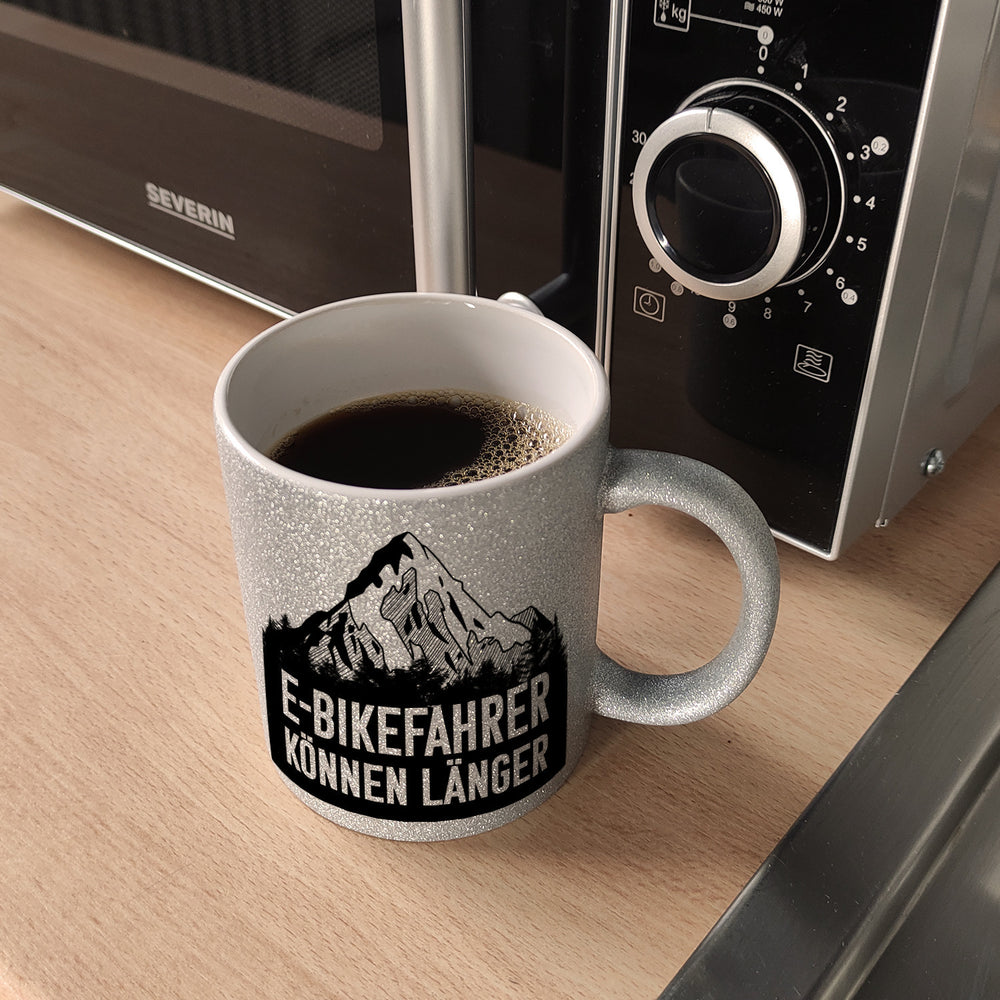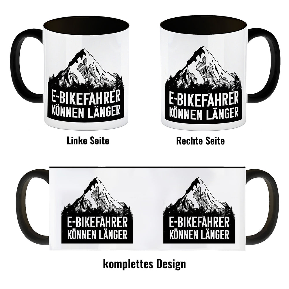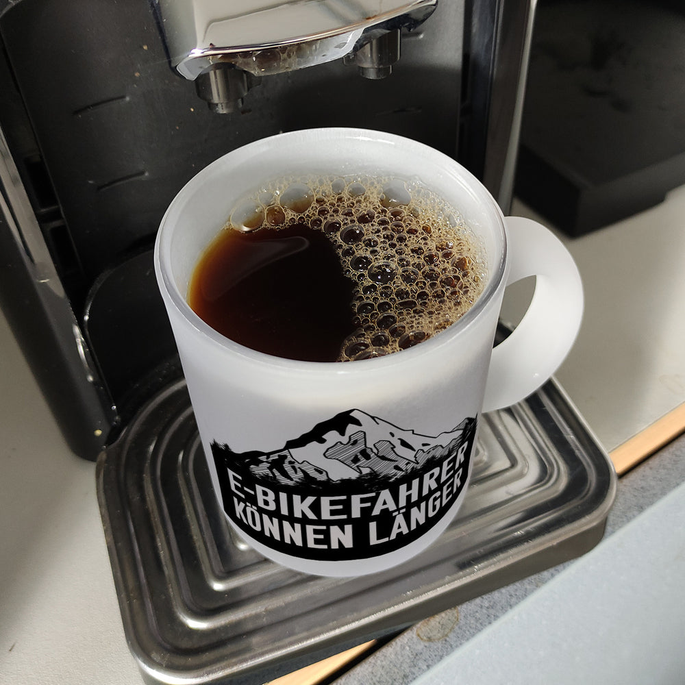 - Es ist allgemein bekannt, dass E-Bikefahrer einfach länger können. Der Spruch auf dieser Kaffeetasse kann in die eine oder in die andere Richtung gedeutet werden.