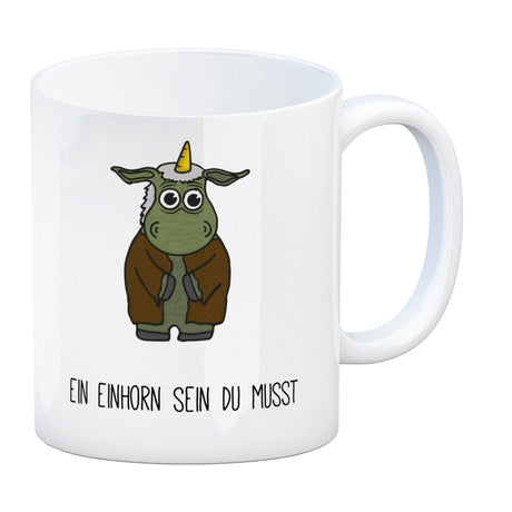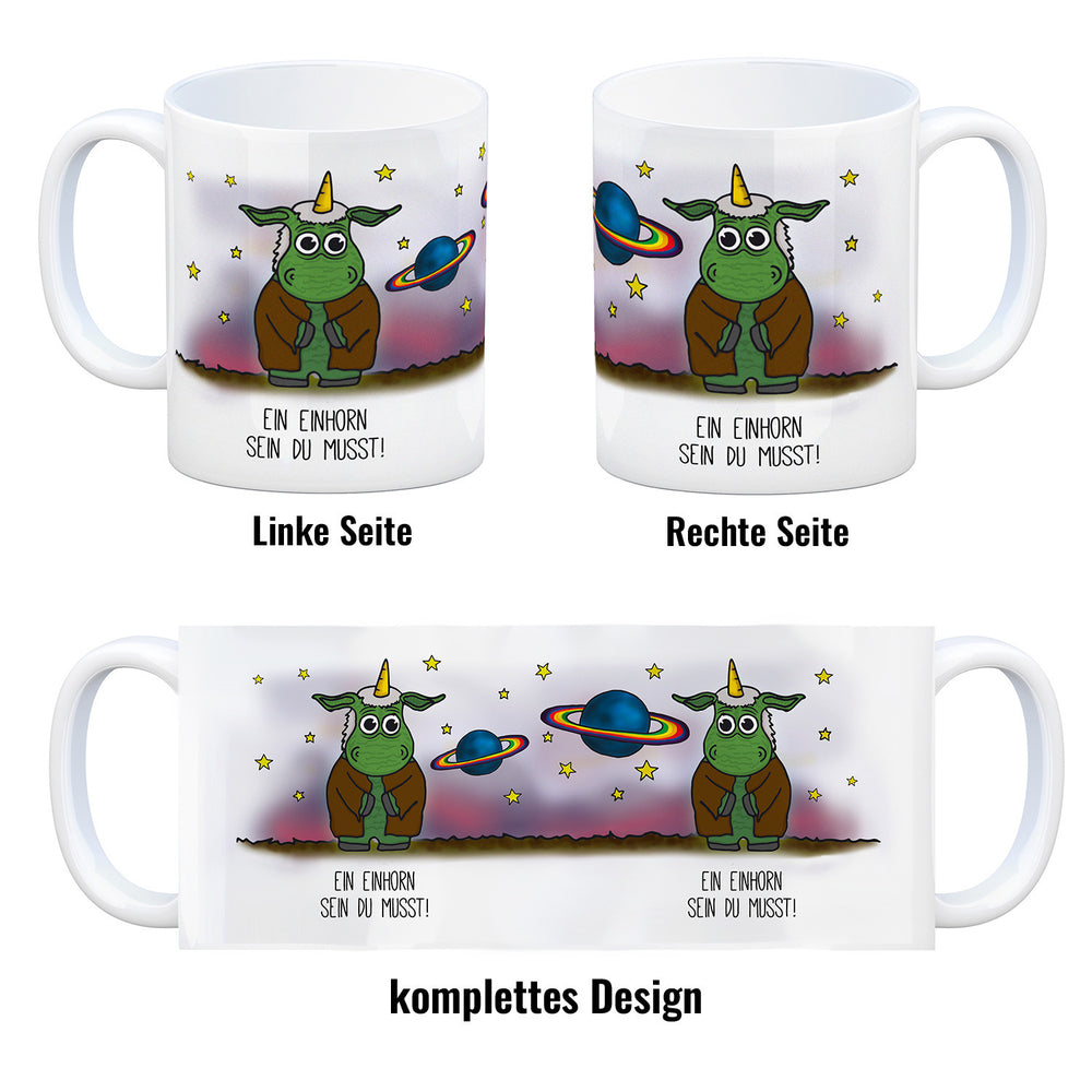 Honeycorns Kaffeebecher mit Einhorn Motiv und Spruch: Ein Einhorn sein du musst