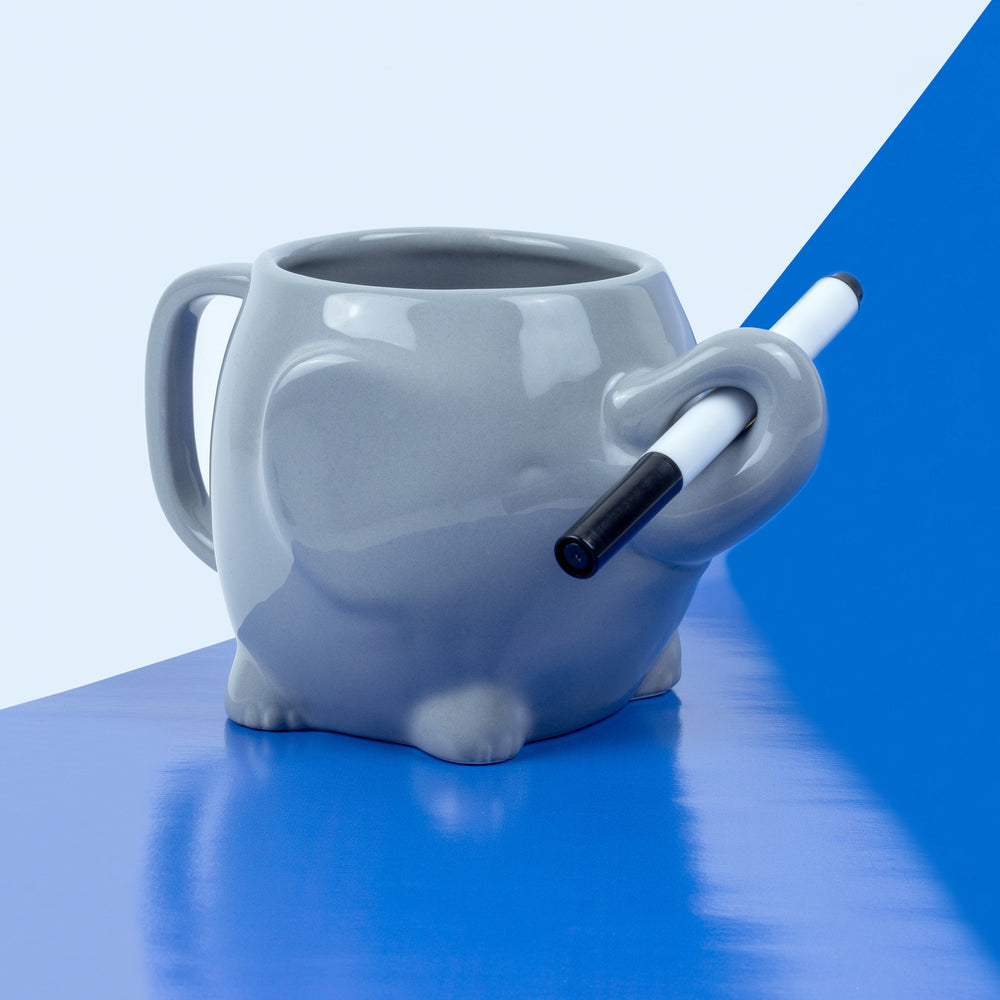 - Die Memo Tasse wird mit einem Stift geliefert, mit dem man Nachrichten auf dem Elefanten hinterlassen und auch wieder wegwischen kann.