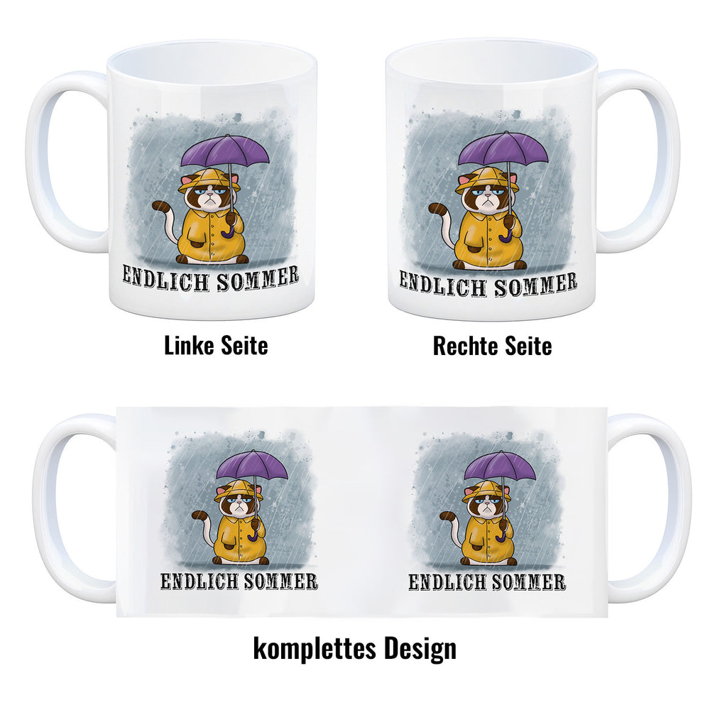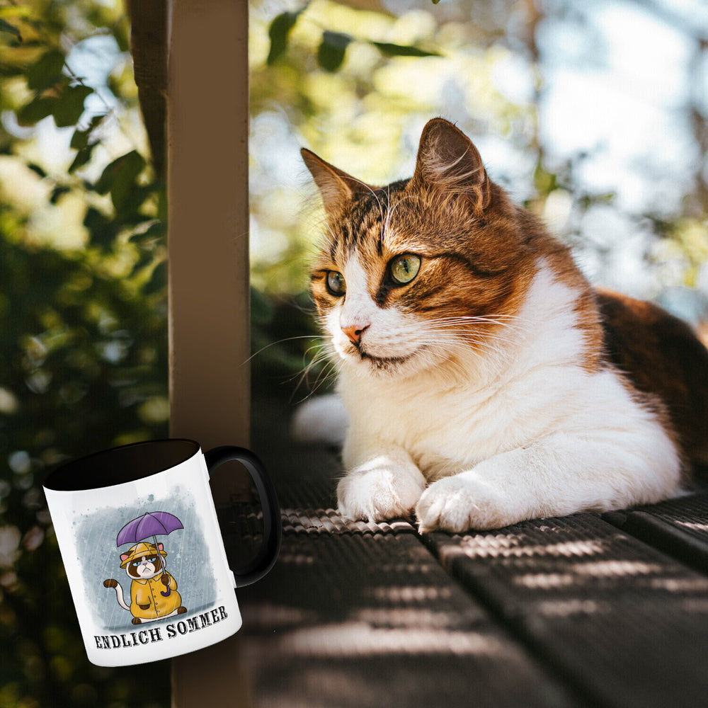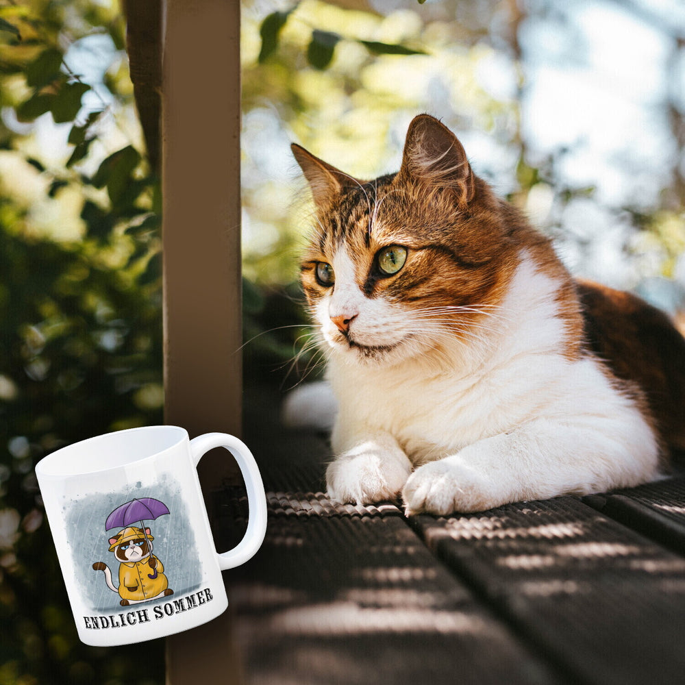 - 1x Endlich Sommer Kaffeebecher mit grummeliger Katze in der gewählten Ausführung