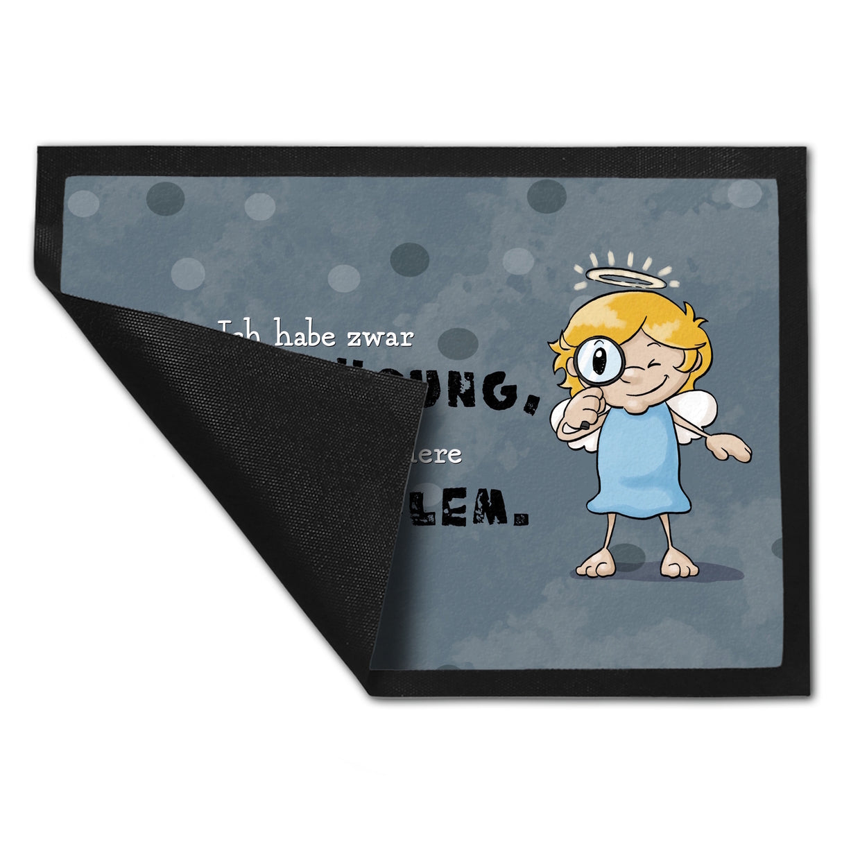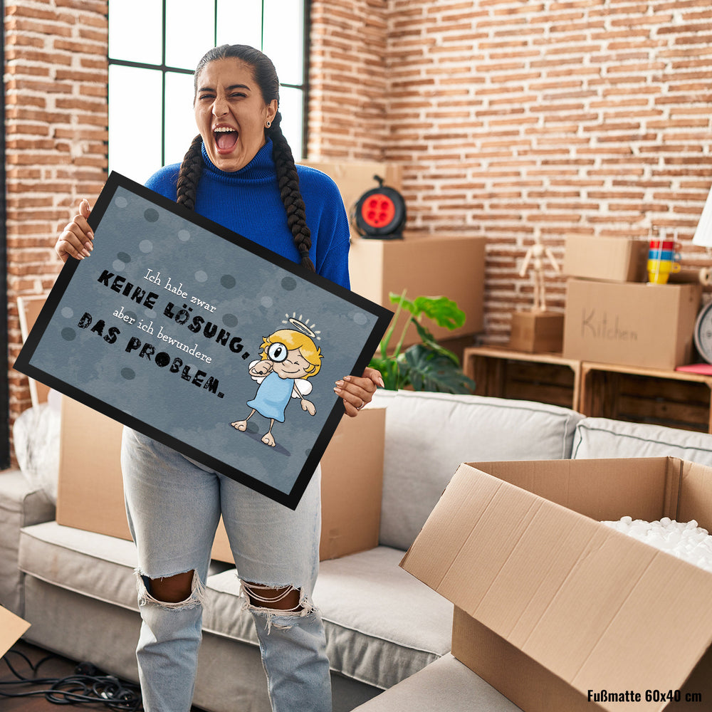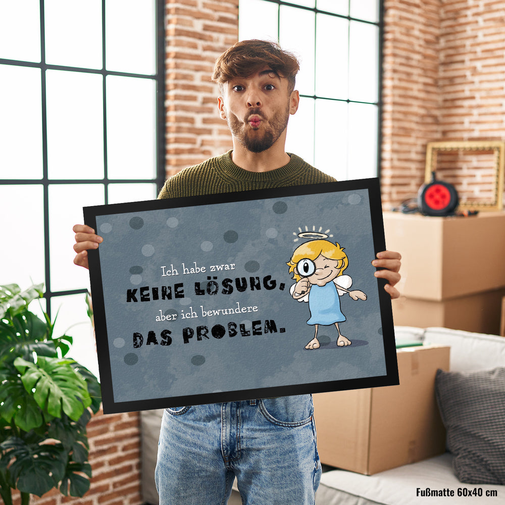 - Du bist auf der Suche nach einer kreativen Geschenkidee? Dann ist die neckische Fußmatte mit Engel Motiv genau das Richtige! Ob zur Einweihungsparty oder beim Umzug in eine neue Wohnung - dieser sarkastisch-witzig gestaltete Fußabtreter wird garantiert viele Lacher hervorrufen. Mit dem Spruch: Ich habe zwar keine Lösung, aber ich bewundere das Problem versprüht die Türmatte himmlische Ironie.