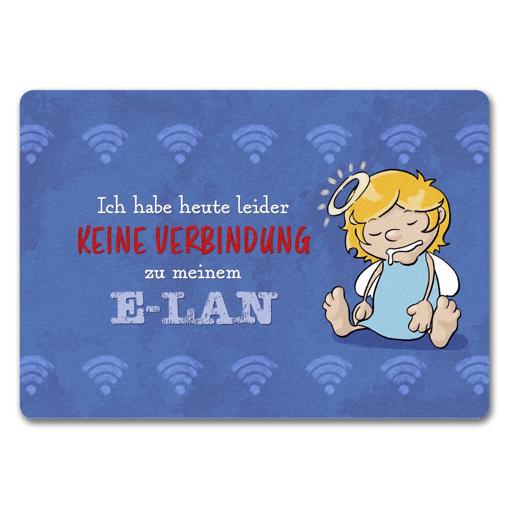 - Du bist auf der Suche nach einer kreativen Geschenkidee? Dann ist die neckische Fußmatte mit Engel Motiv genau das Richtige! Ob zur Einweihungsparty oder beim Umzug in eine neue Wohnung - dieser sarkastisch-witzig gestaltete Fußabtreter wird garantiert viele Lacher hervorrufen. Mit dem Spruch: Ich habe heute leider keine Verbindung zu meinem E-Lan versprüht die Türmatte himmlische Ironie.