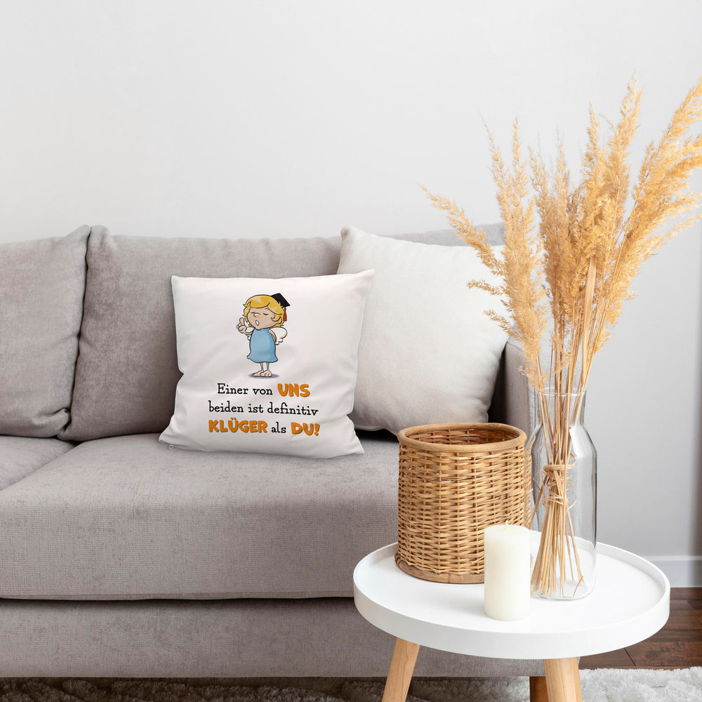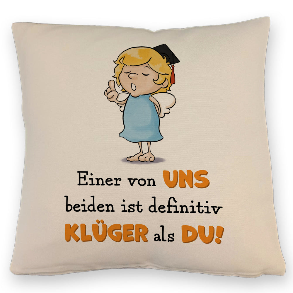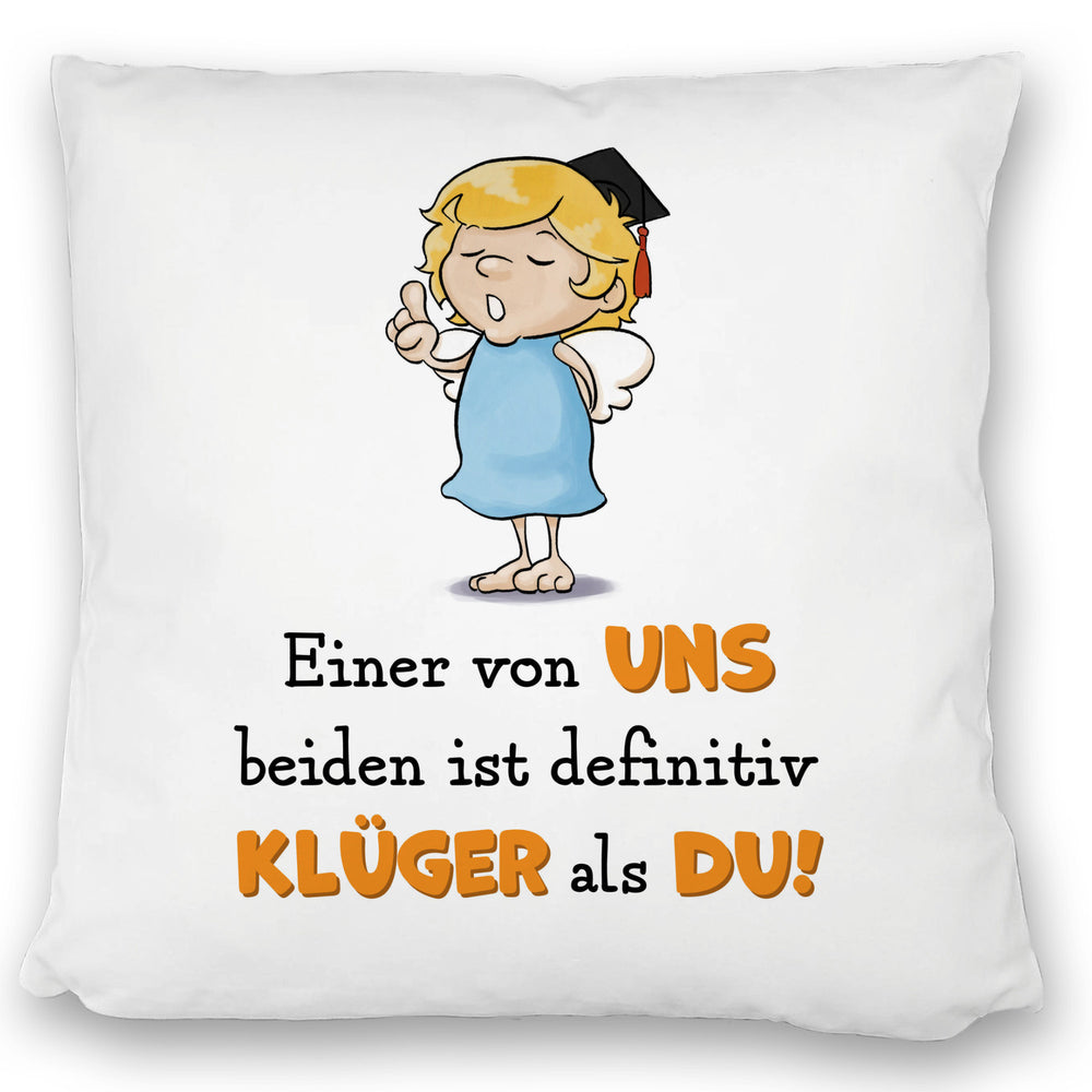 Engel Kissen mit Spruch - Einer von uns ist klüger als du!