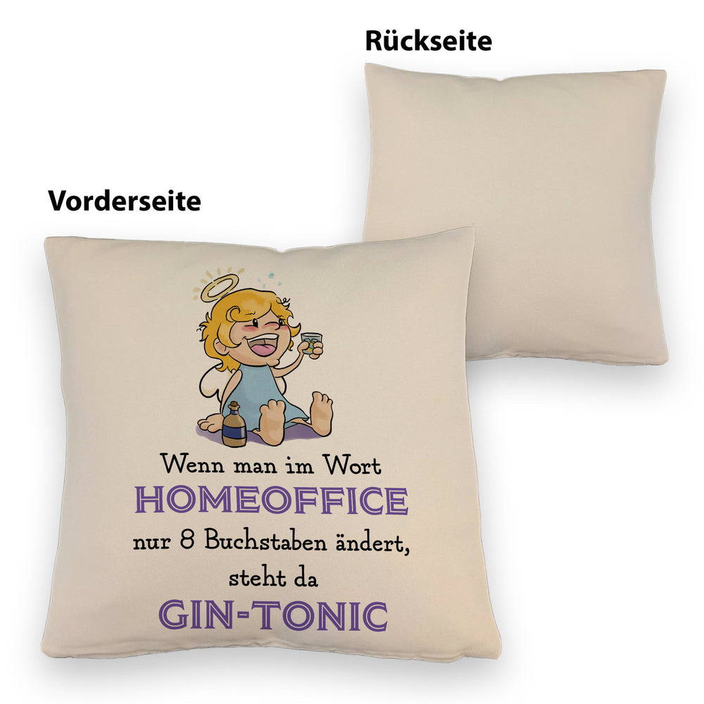 - 1x Engel Kissen mit Spruch - Homeoffice klingt ähnlich wie Gin-Tonic in der gewählten Ausführung