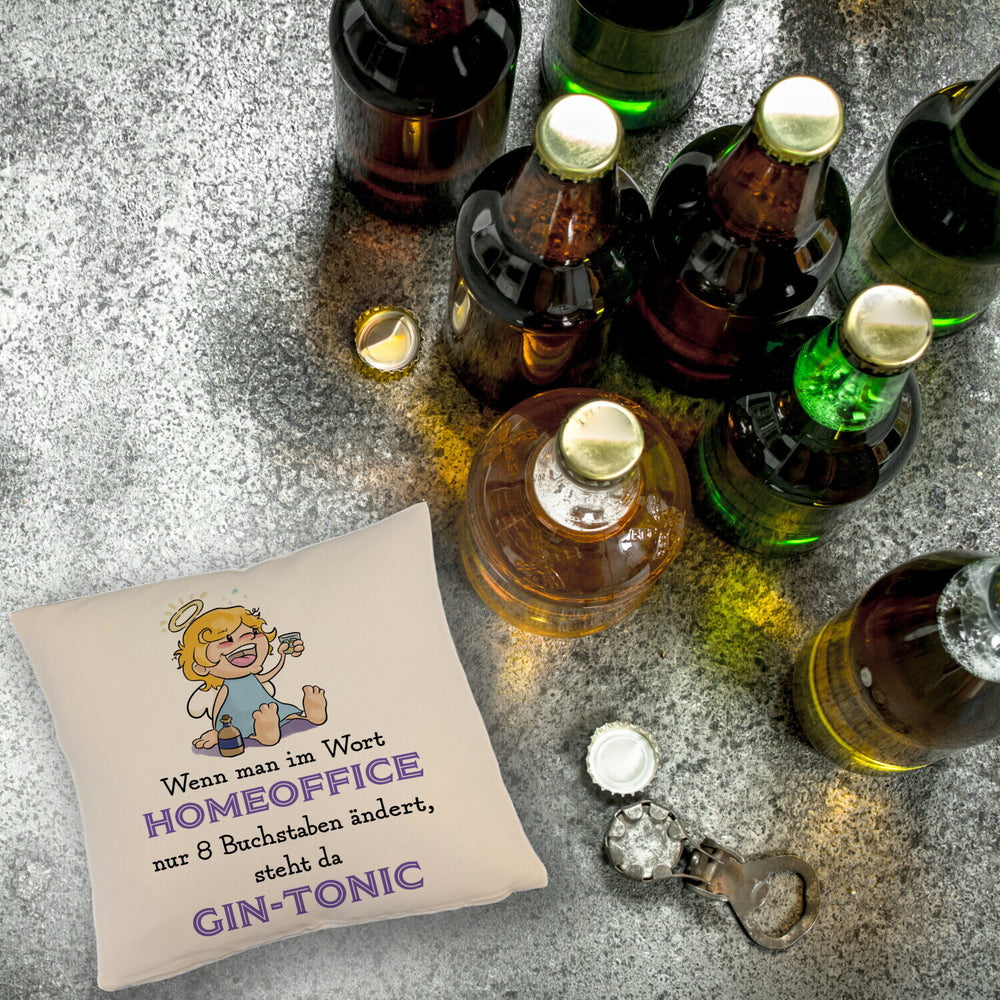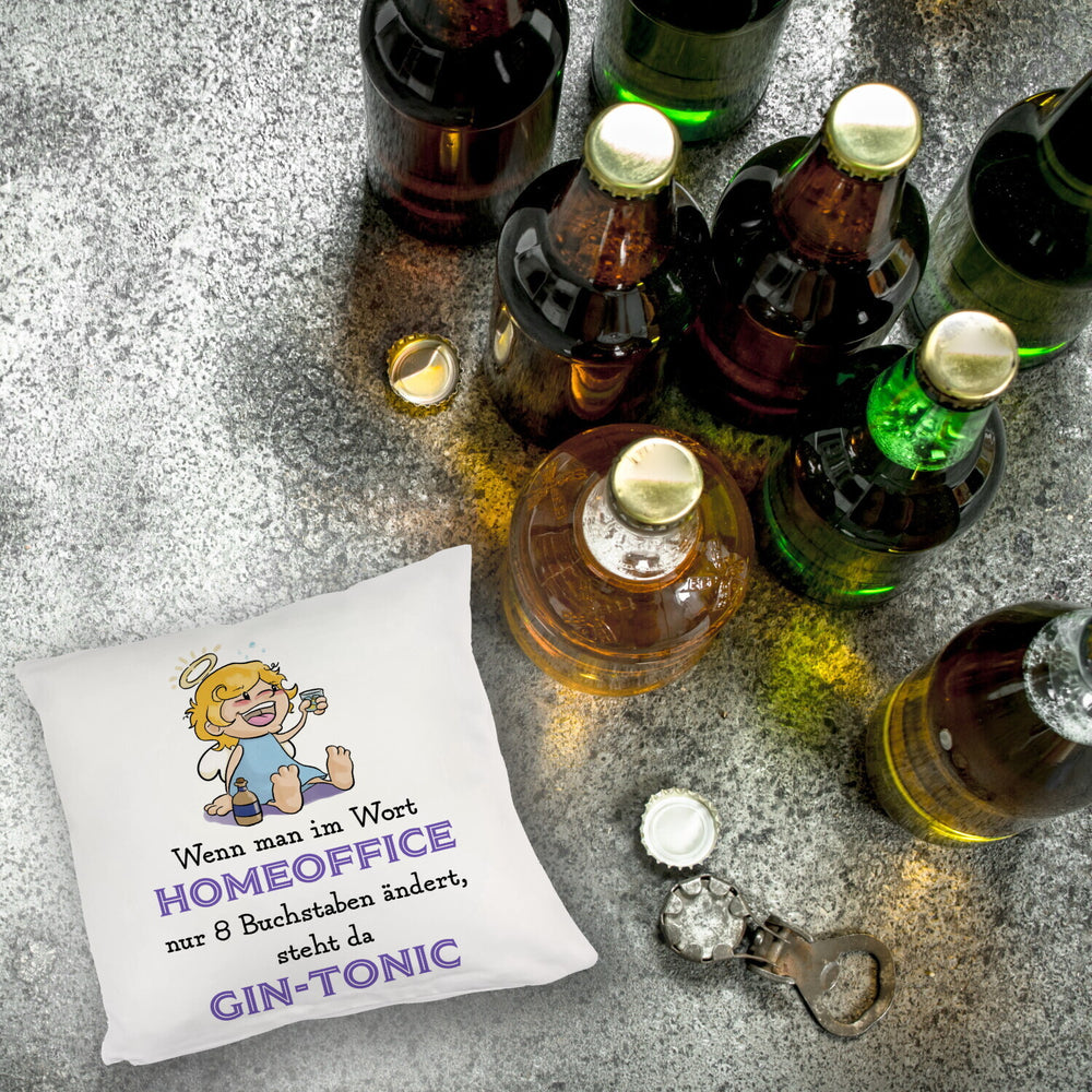 Engel Kissen mit Spruch - Homeoffice klingt ähnlich wie Gin-Tonic