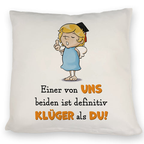 Engel Kissen mit Spruch - Einer von uns ist klüger als du!