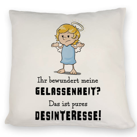 Engel Kissen mit Spruch - Meine Gelassenheit ist Desinteresse