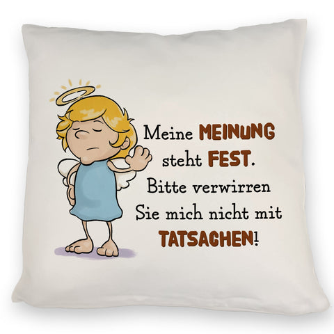 Engel Kissen mit Spruch - Verwirre mich nicht mit Tatsachen in meiner Meinung