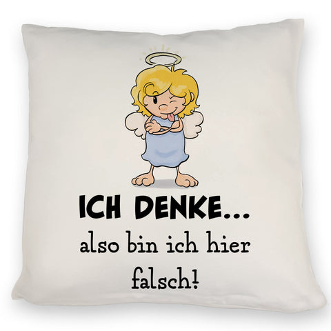 Engel Kissen mit Spruch - Mit Denken bin ich hier falsch
