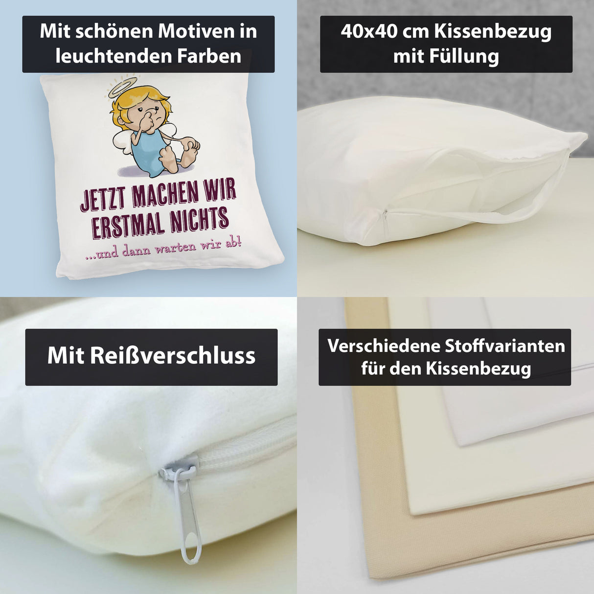 - 1x Engel Kissen mit Spruch - Wir machen nichts und warten ab in der gewählten Ausführung