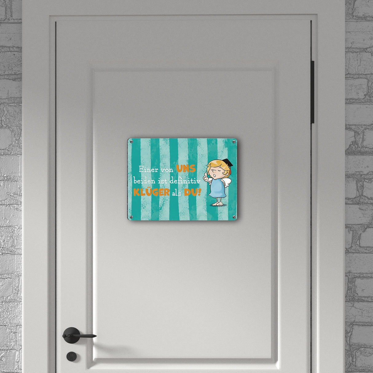 Engel Metallschild mit Spruch - Einer von uns ist klüger als du!