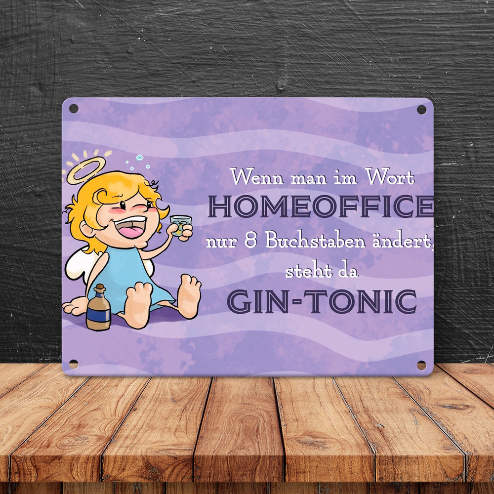 Engel Metallschild mit Spruch - Homeoffice klingt ähnlich wie Gin-Tonic