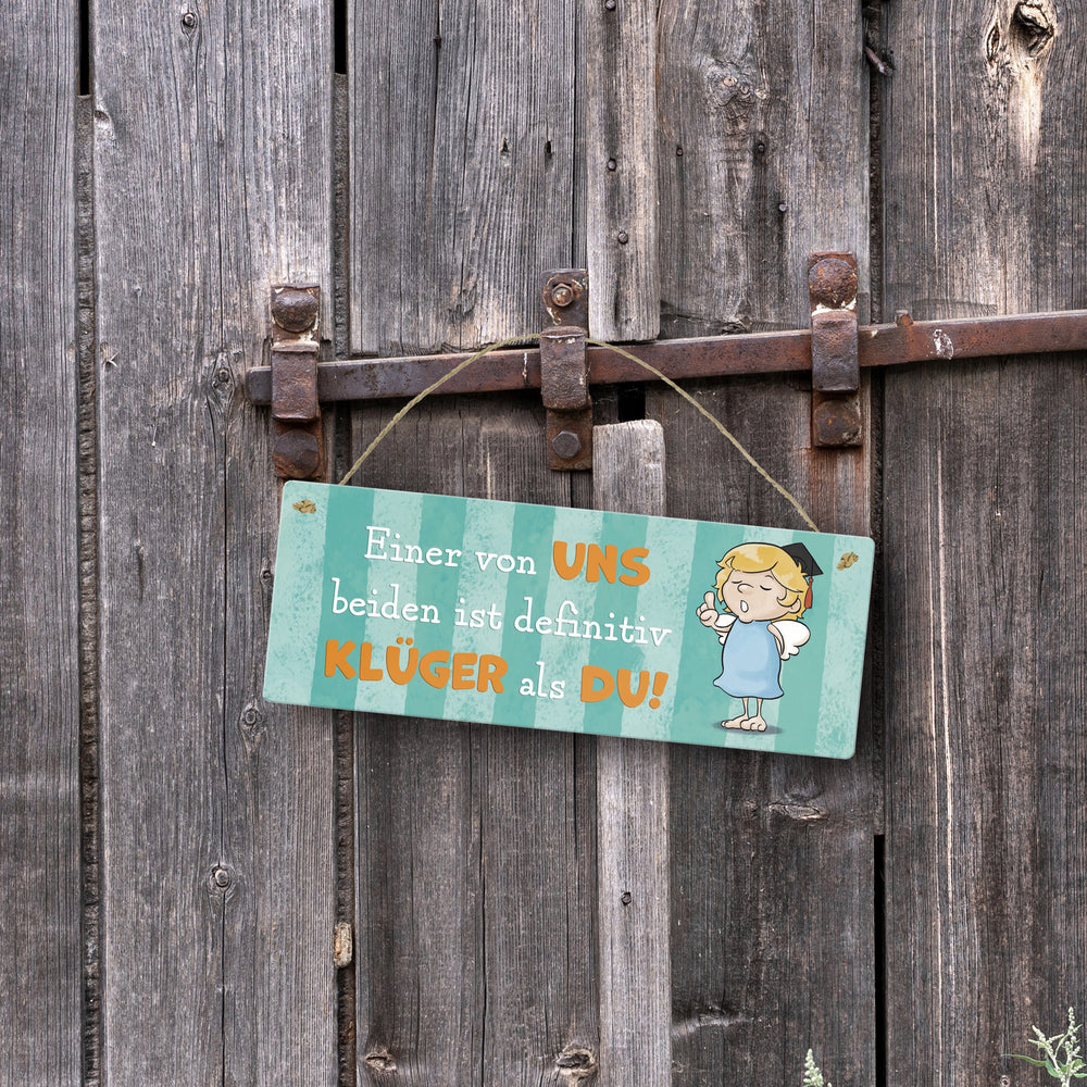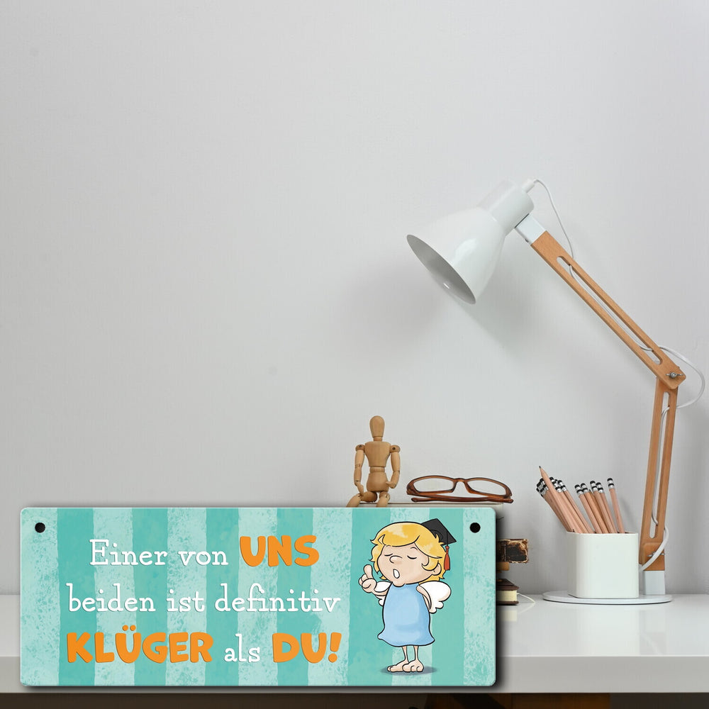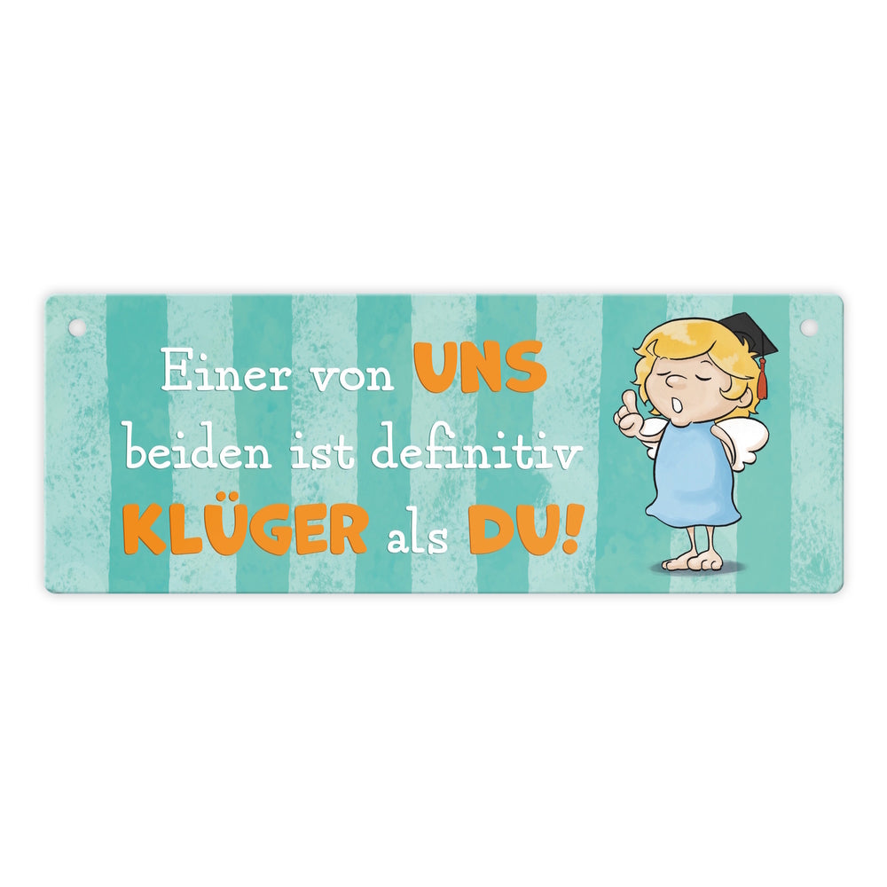 - 1x Engel Metallschild mit Spruch - Einer von uns ist klüger als du! in der gewählten Größe