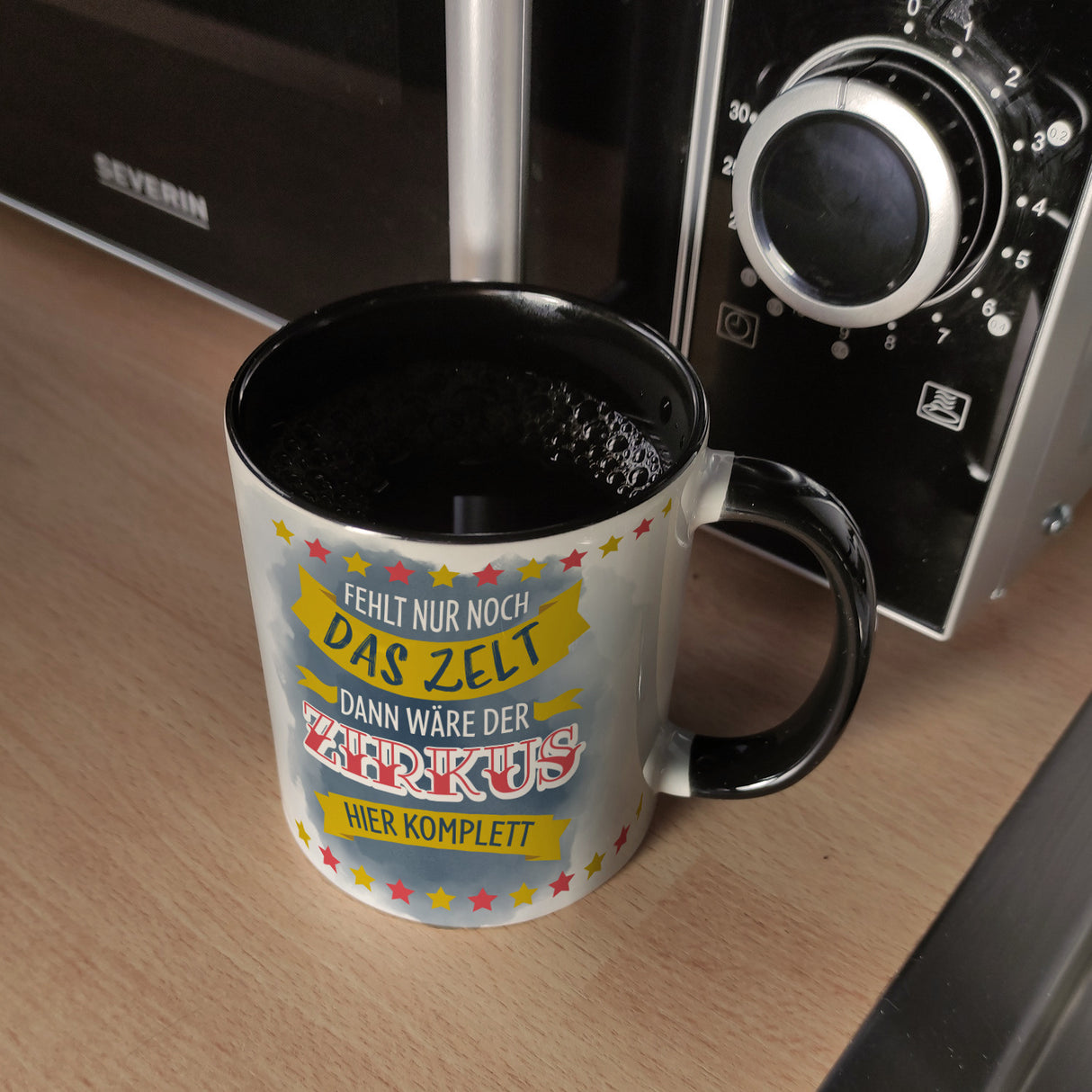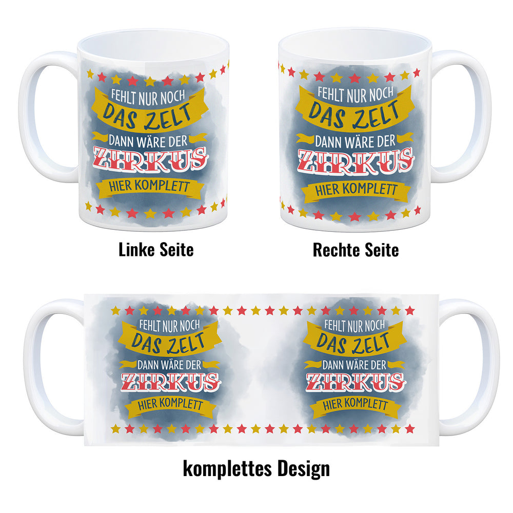 - Zu Hause oder auf der Arbeit herrscht manchmal der reinste Zirkus? Dann ist dieser tolle Kaffeebecher genau das Richtige für dich. Der lustige Spruch darauf wird garantiert alle die dich damit sehen zum Schmunzeln bringen!