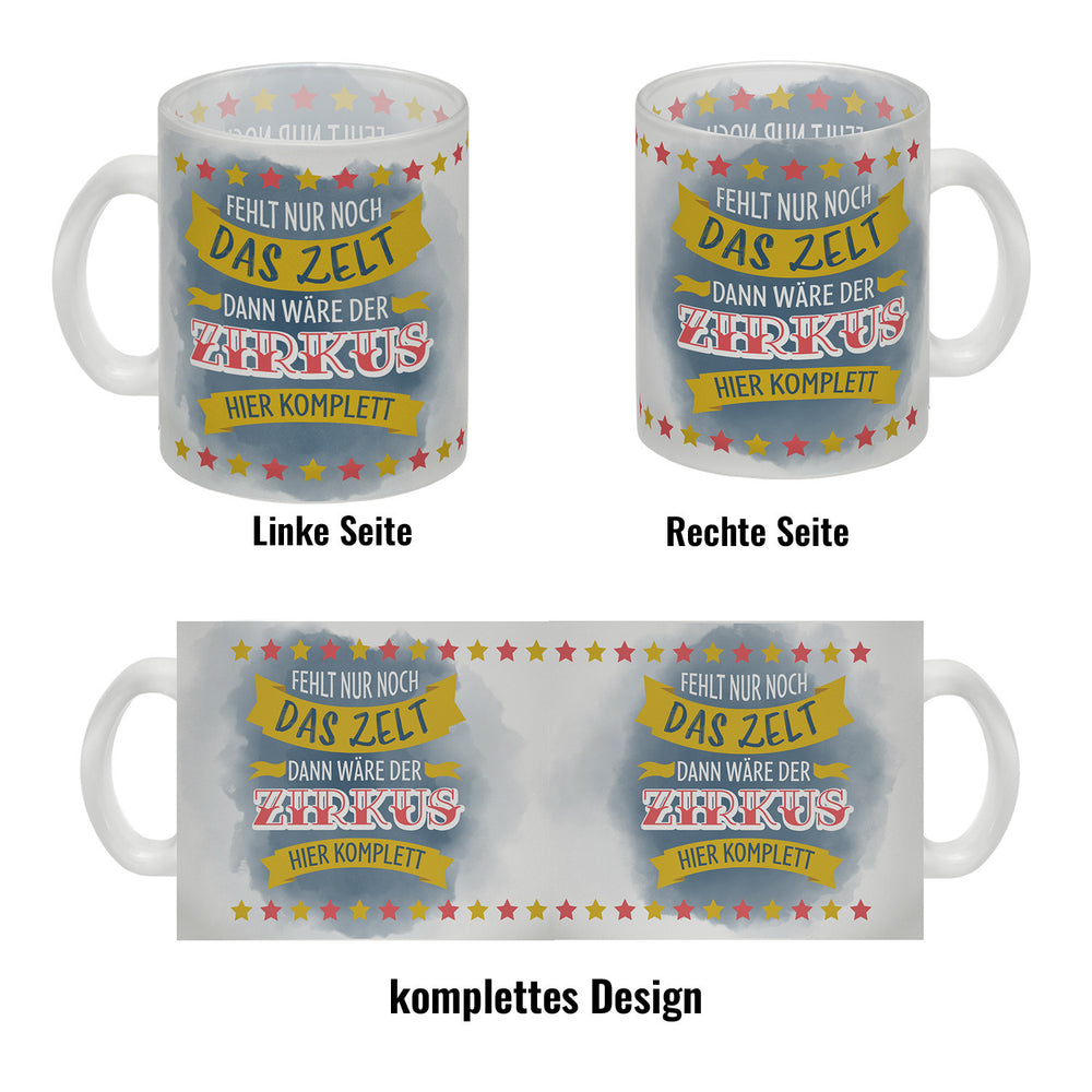 - 1x Fehlt nur noch das Zelt, dann wäre der Zirkus hier komplett Kaffeebecher mit buntem Zirkusdesign in der gewählten Ausführung