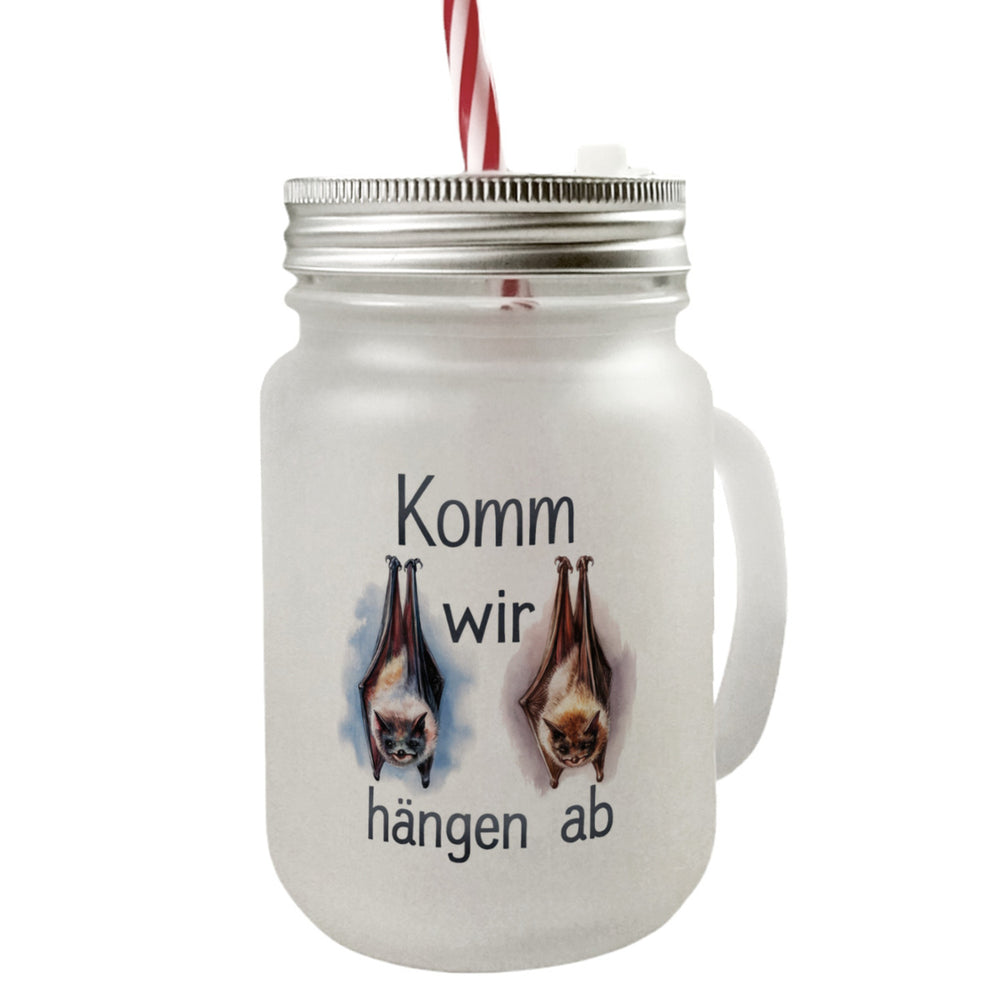 - 1x Fledermäuse - Komm, wir hängen ab Trinkglas mit Bambusdeckel mit Bambusdeckel oder Henkel