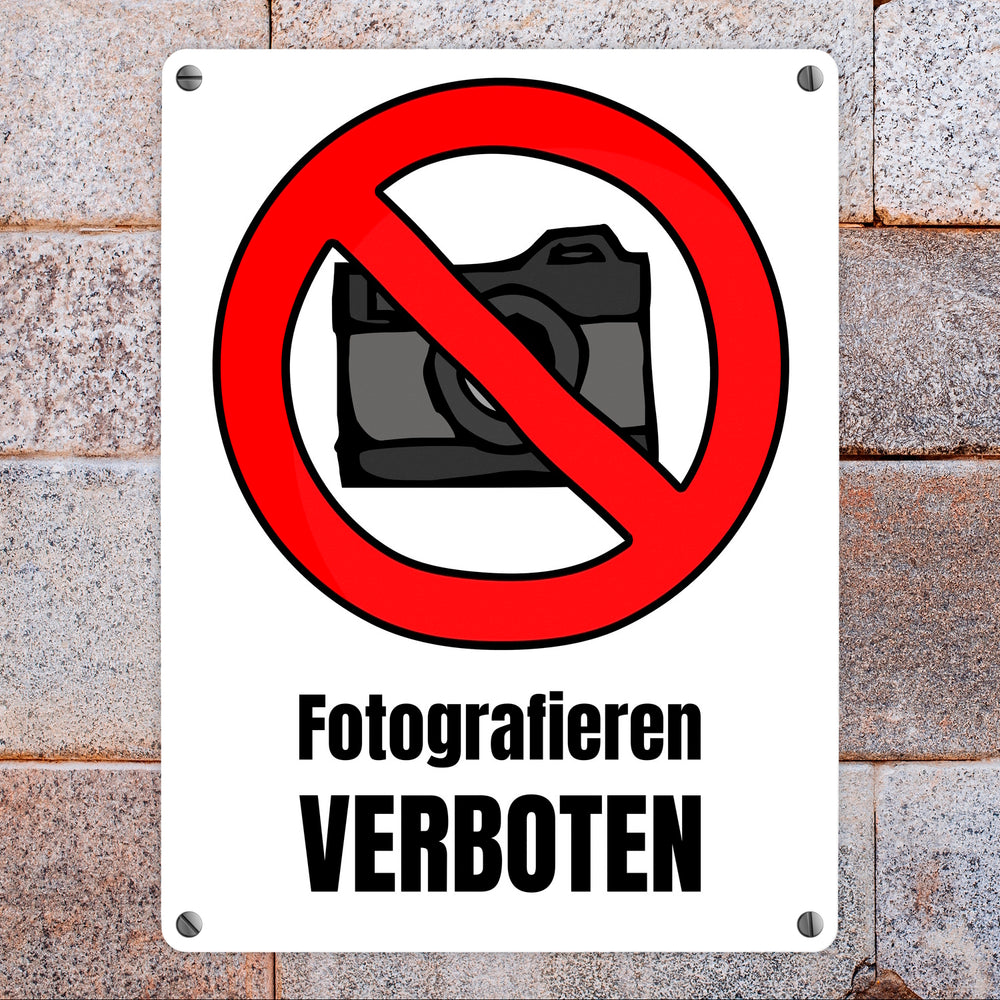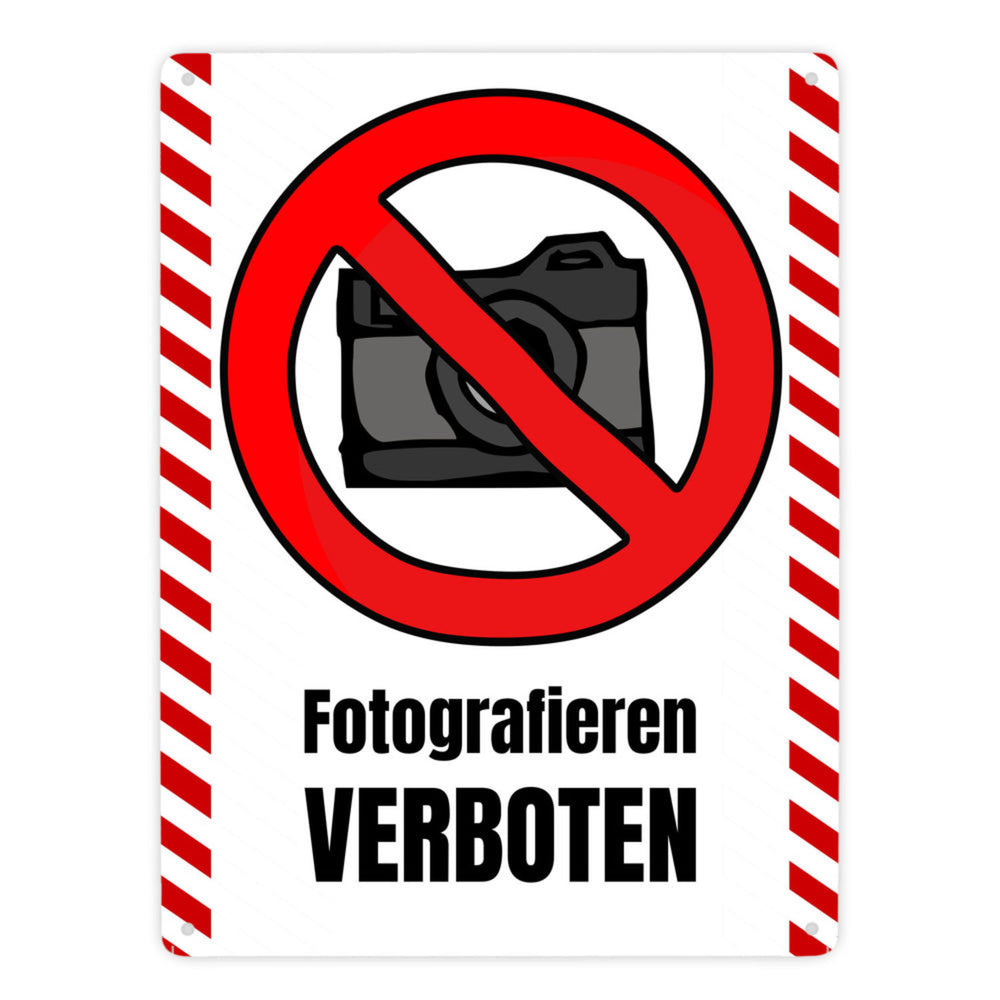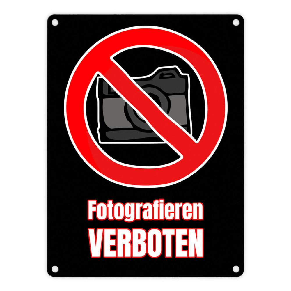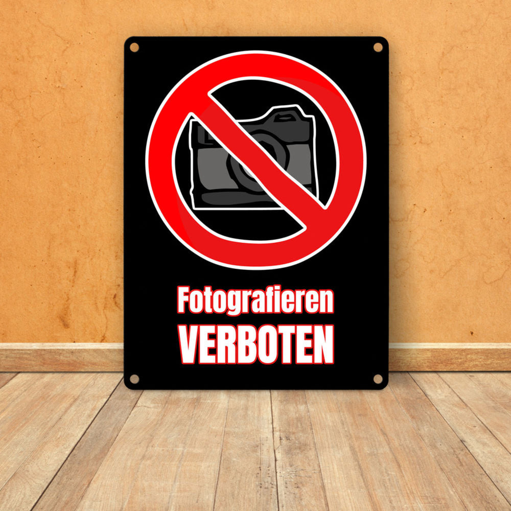 • Diese Metallschild (Aluminium-Blechschild) lässt sich zu vielen Gelegenheiten einsetzen. Als Hinweis bei Veranstaltungen, als Verbotsschild in der Firma oder überall dort wo Fotos einfach nicht erlaubt sind.